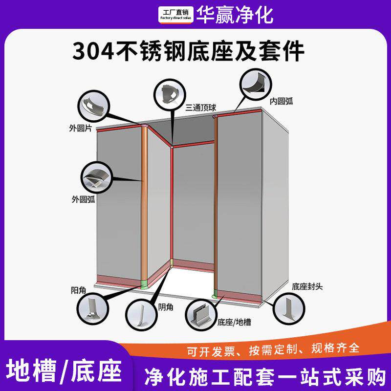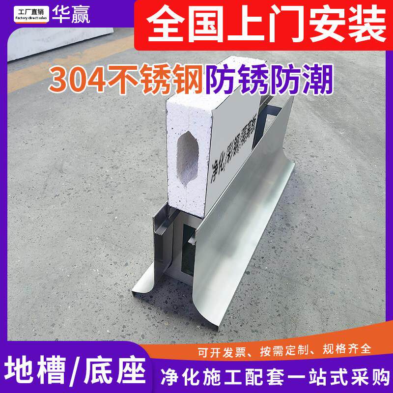 📚 304不锈钢防水地槽双圆弧防撞矮墙食品厂工厂用彩钢板底座地轨