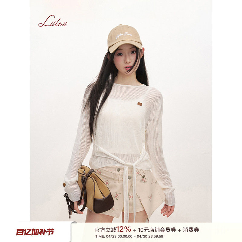 📚 孟子义赵昭仪同款 Liilou 松弛感 扭结系带宽松镂空针织云朵衫