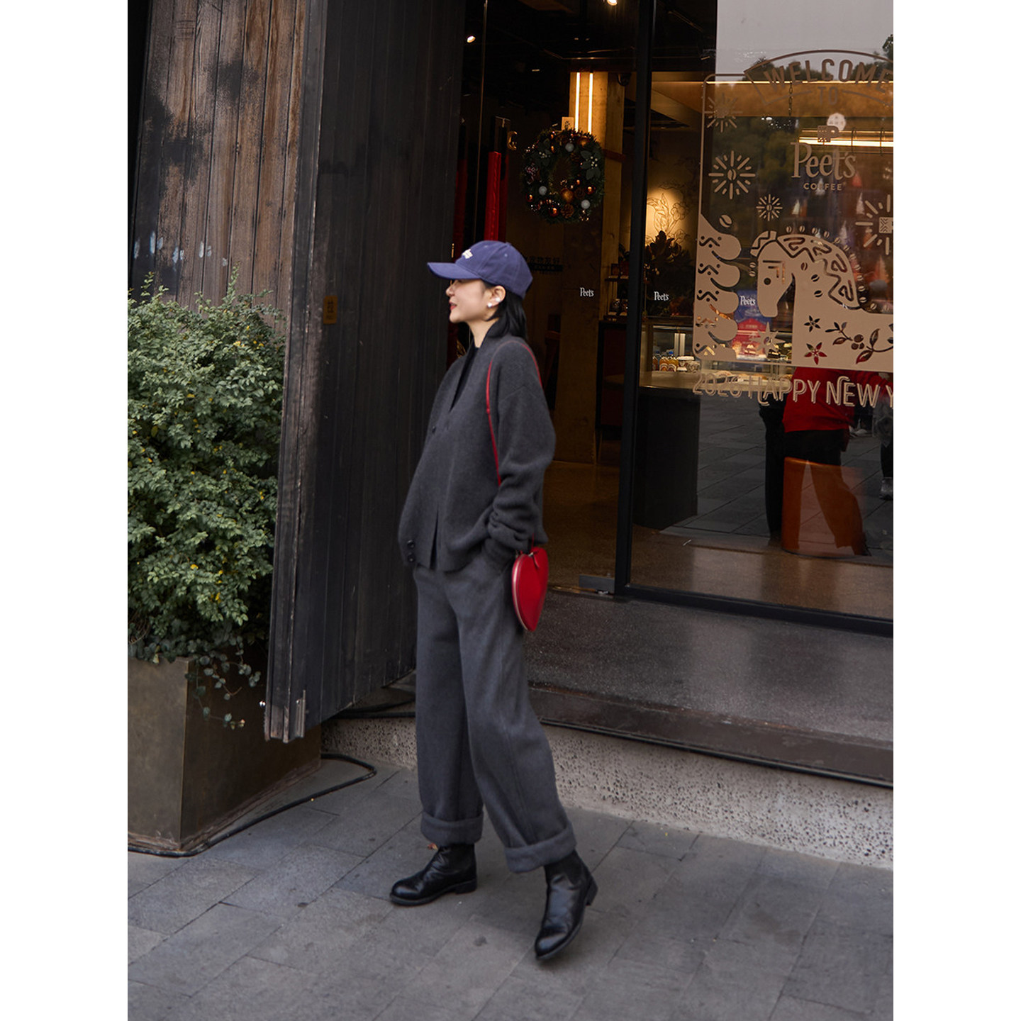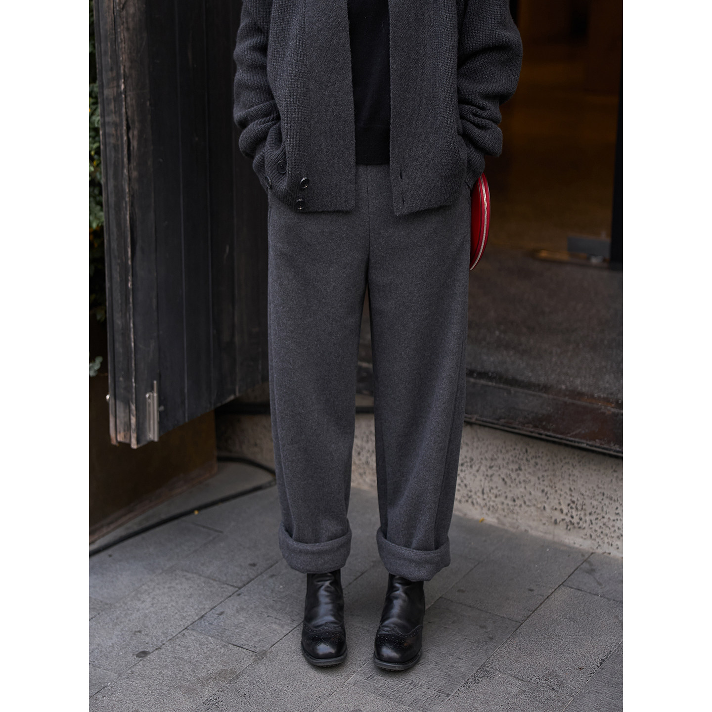 📚 TOFOD 糯米裤 丝羊毛醋酸加绒裤 调性九分奶奶休闲裤 百搭黑白灰