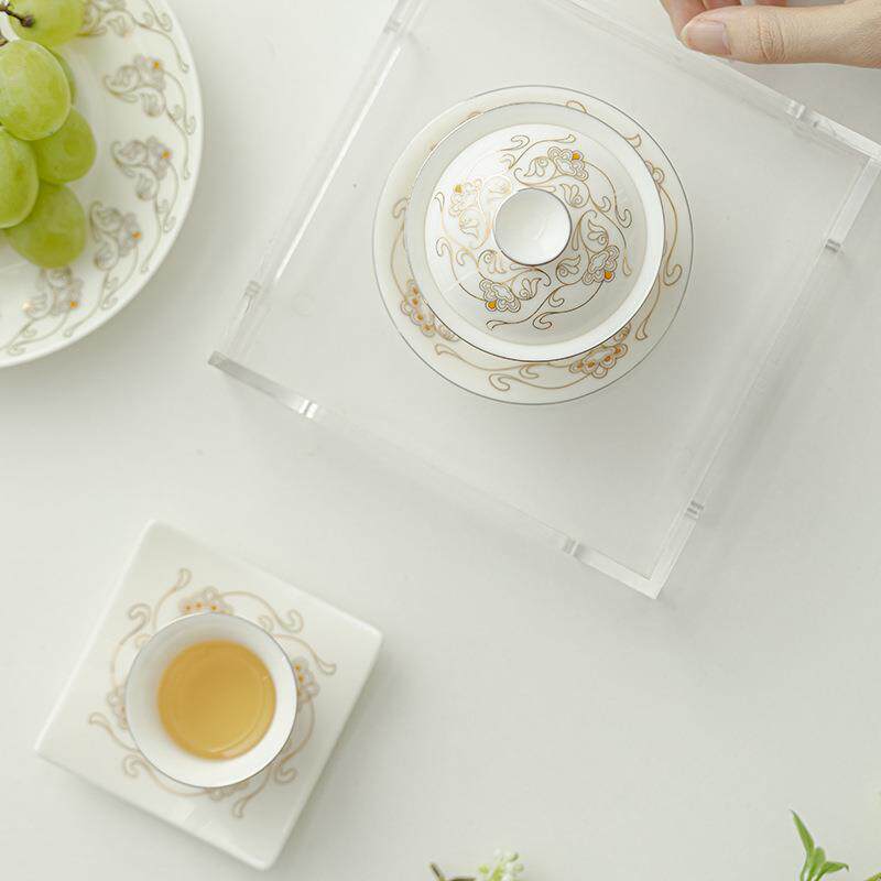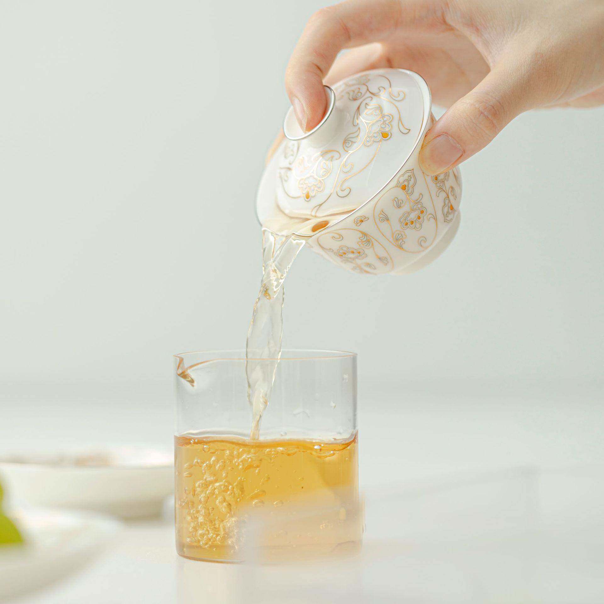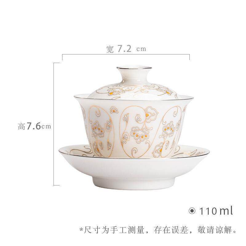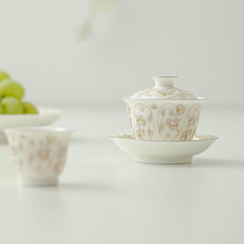 📚 在言肆造宝象花缠枝莲羊脂玉白瓷轻奢贵气防烫家用三才盖碗不烫手