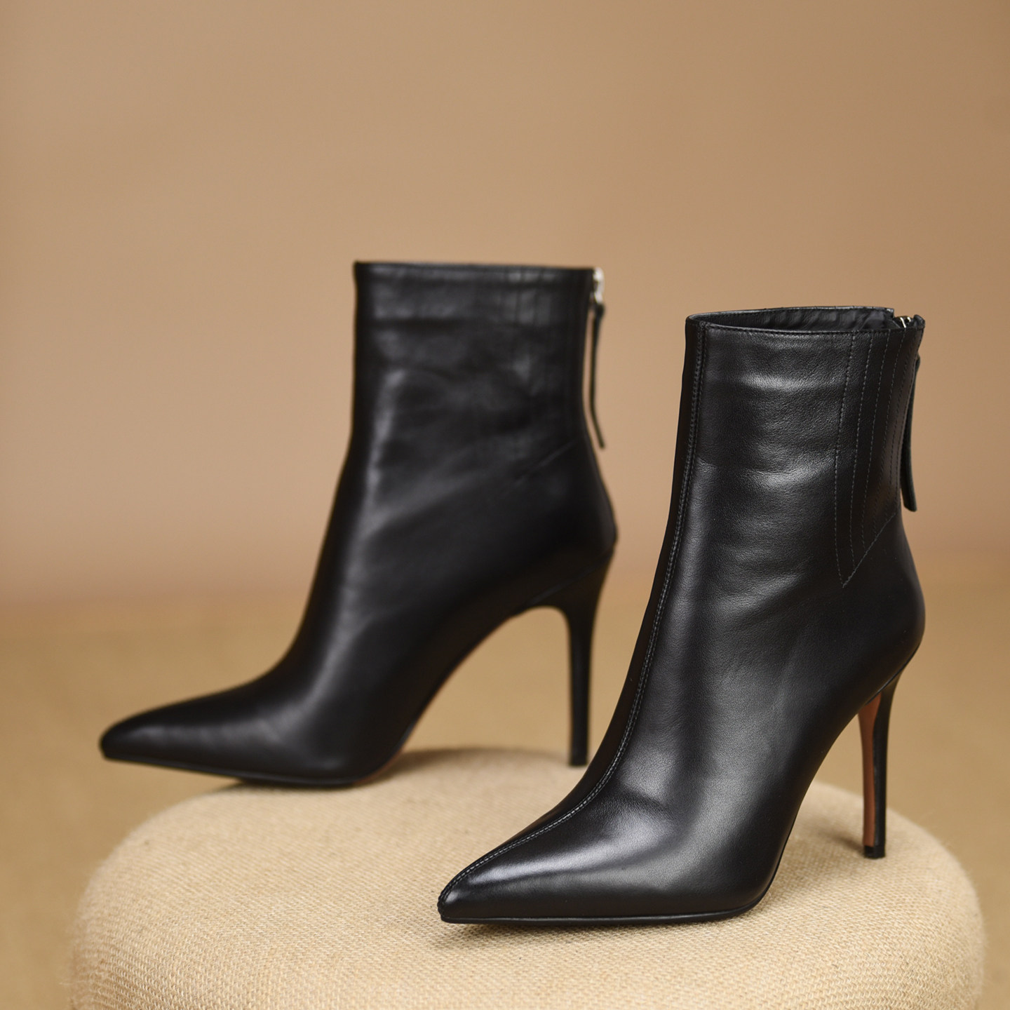 📚 misili~10cm 尖头细跟短靴女2026秋冬季新款高跟鞋平底真皮女靴子