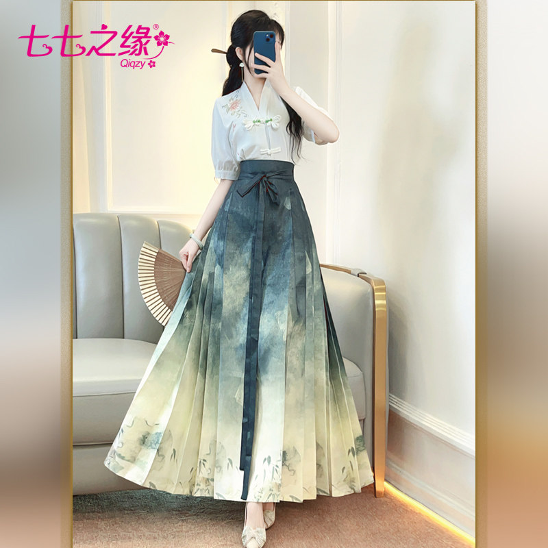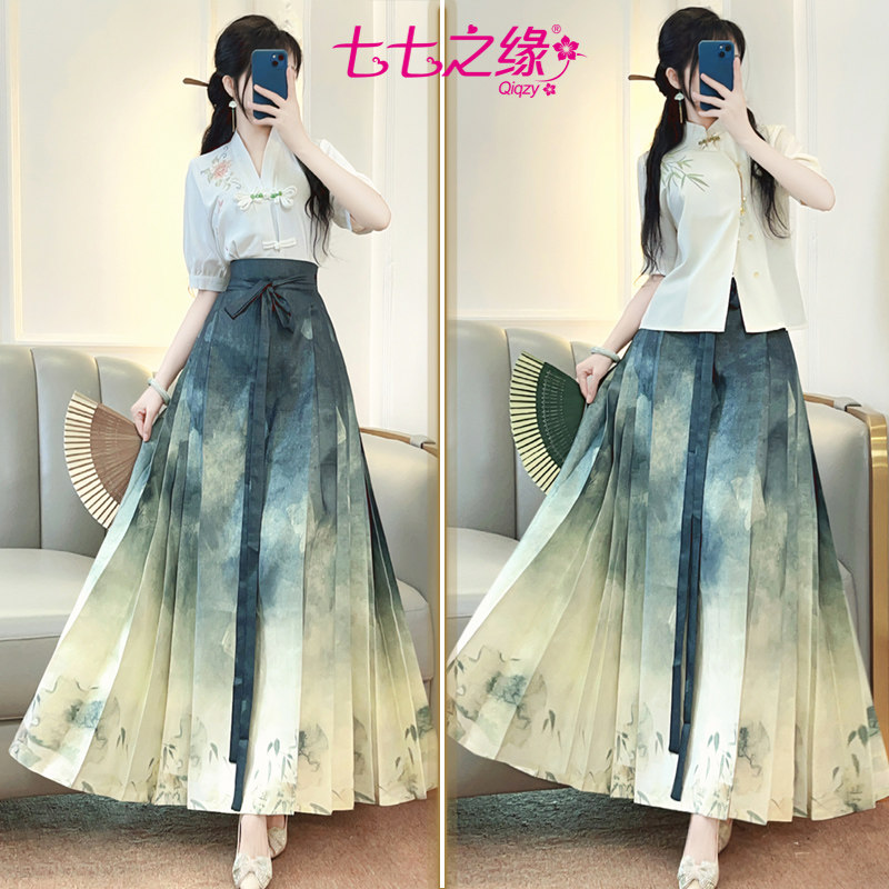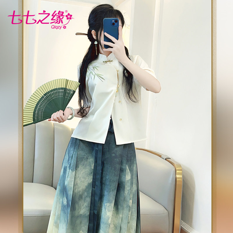 📚 七七之缘夏日新款女装新中式改良复古温婉高级马面裙衬衫套装