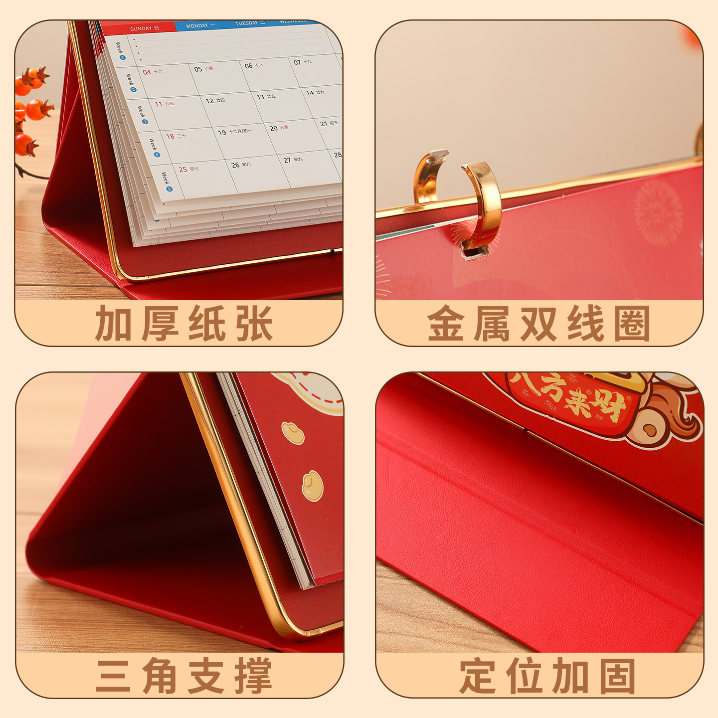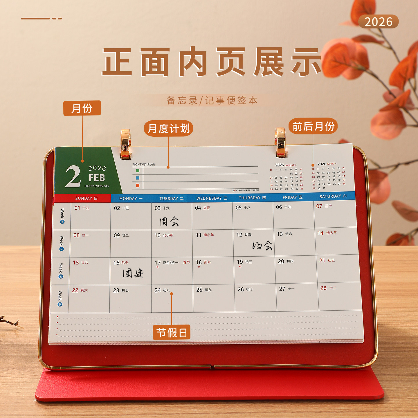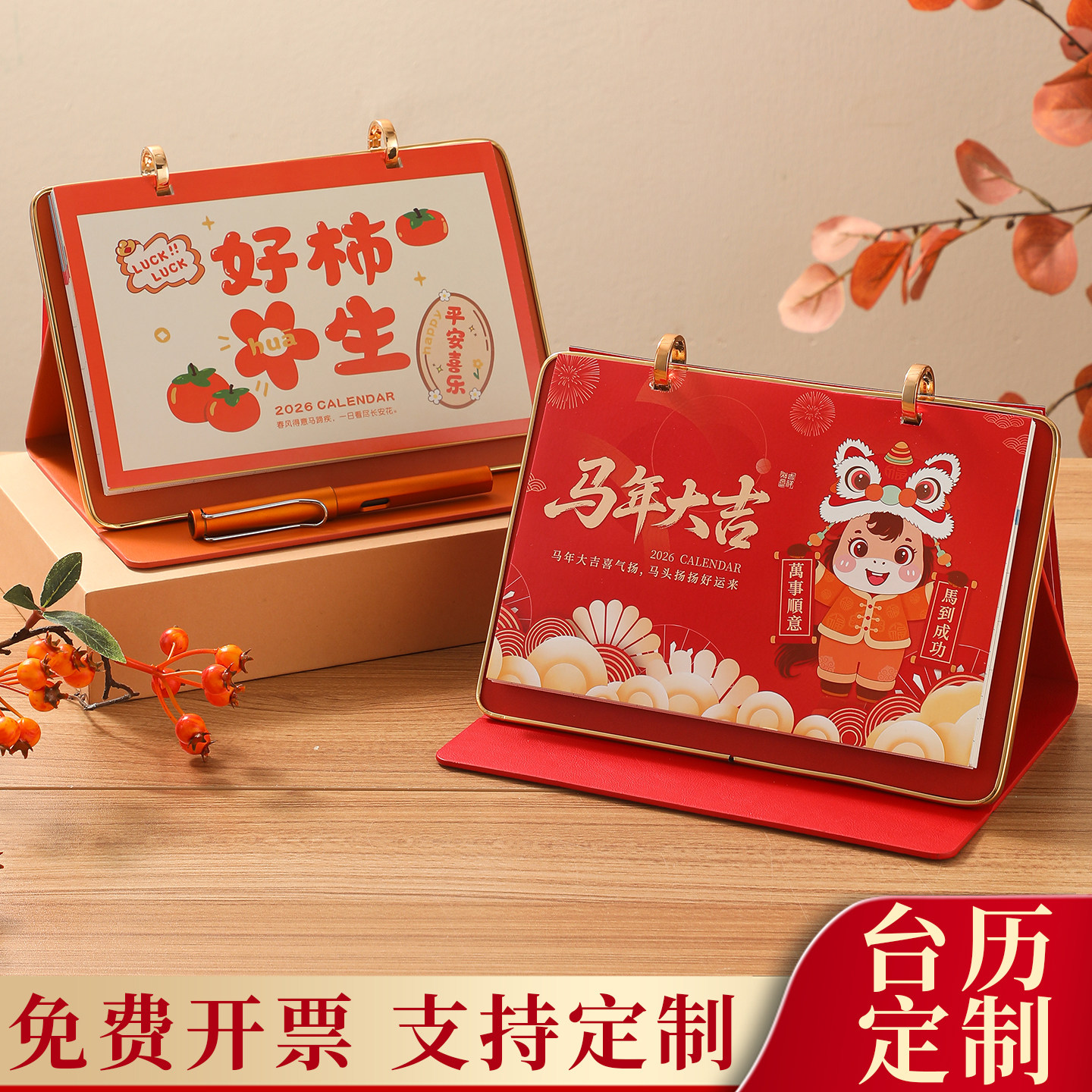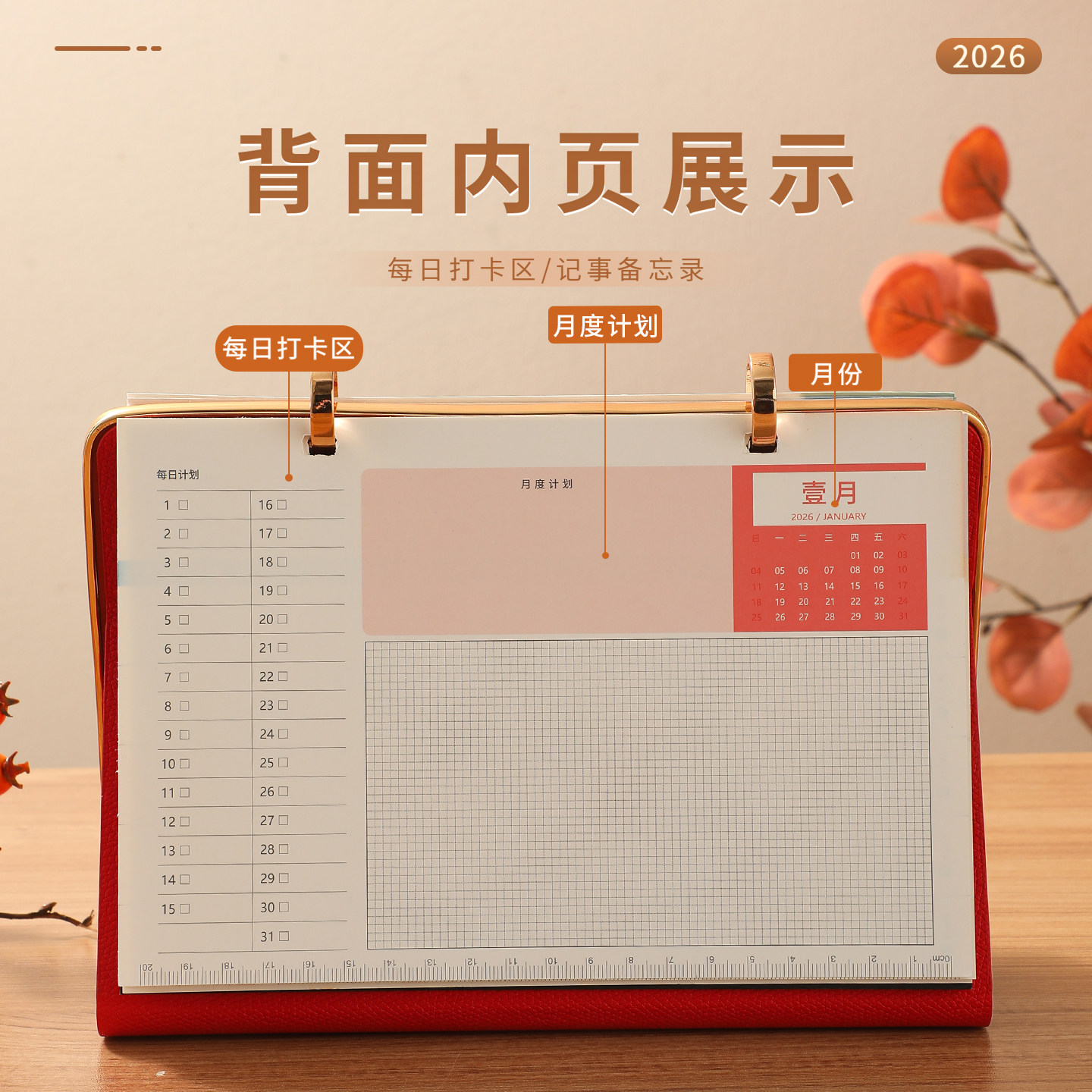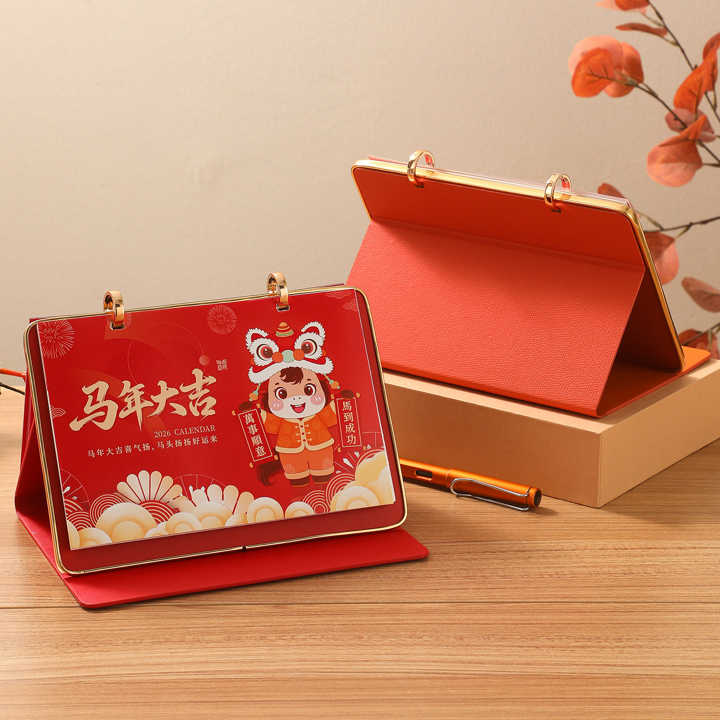 📚 皮质台历2026年新款定制创意桌面日历摆件办公室高颜值高端折叠式活扣翻页皮架台式工作计划本月历记事板印刷