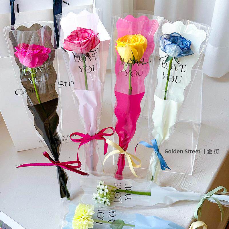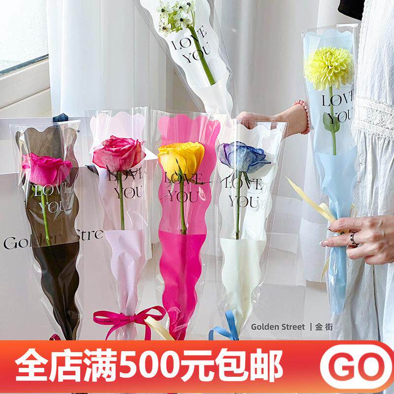 📚 鲜花包装袋单只单枝多支一支玫瑰透明防水花束套袋花艺包花纸材料