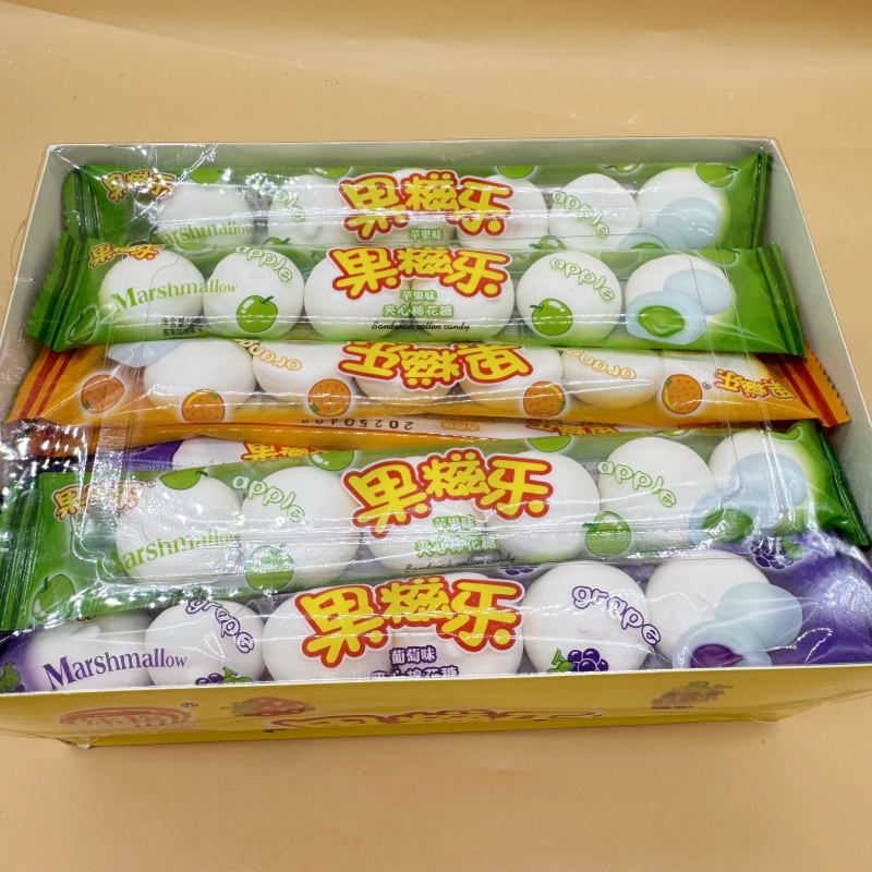 📚 果滋乐棉花糖儿时夹心棉花糖软糖西黄混合水果味老式童年货节糖果