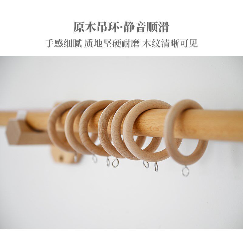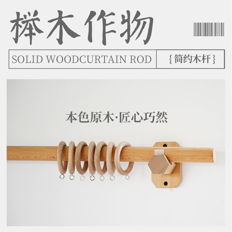 📚 速发禾迈榉质实木木亚麻窗窗杆民宿木杆吊环日式杆帘帘