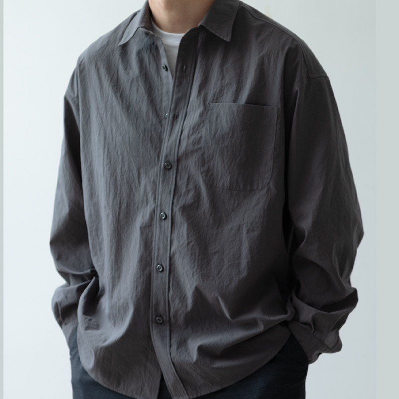 📚 灰色易打理宽松休闲衬衫 PHEATHER