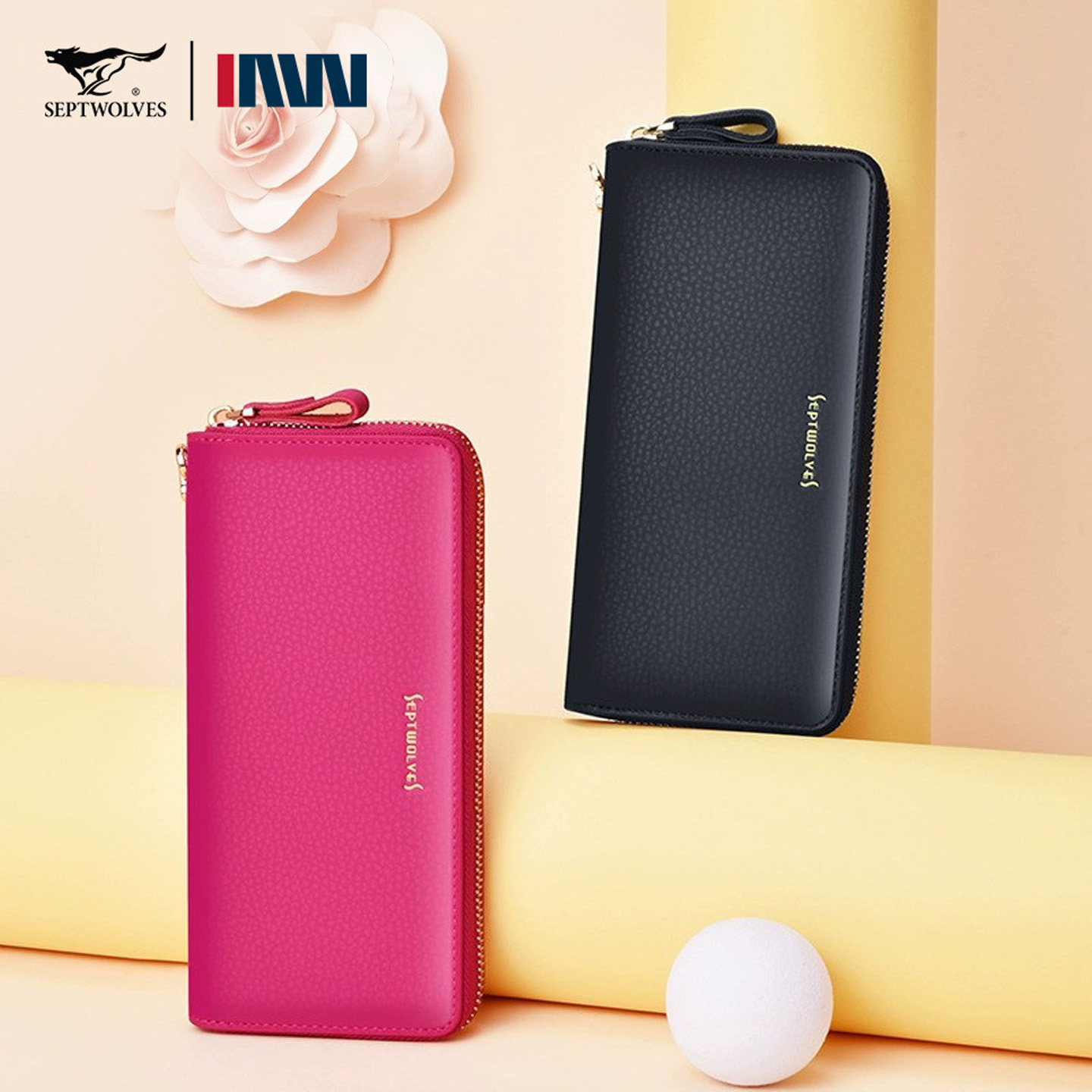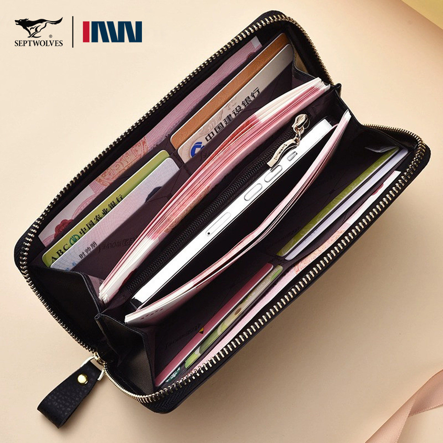 📚 正品七匹狼软皮手拿包女真皮手包可放手机小包时尚长款拉链钱包新