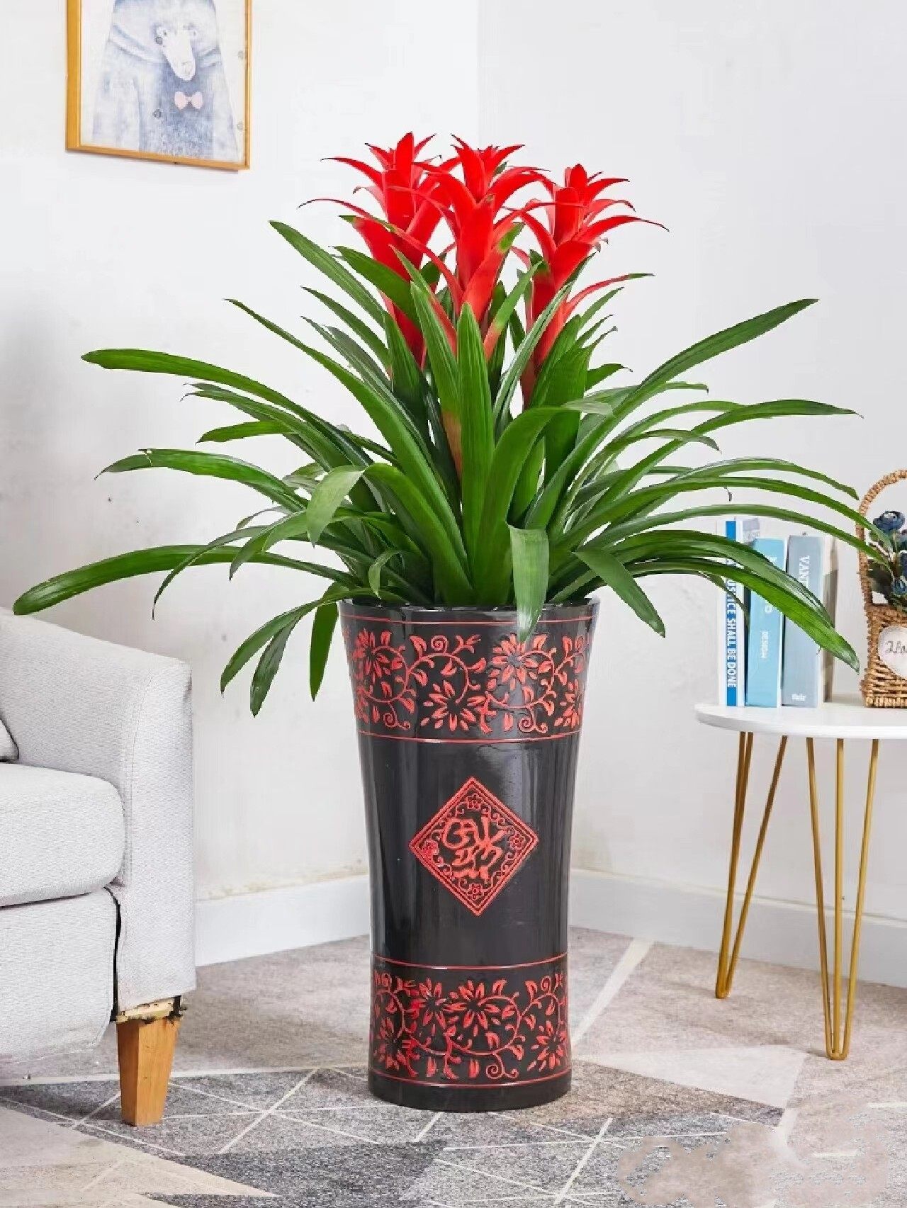 📚 鸿运当头盆栽小红星办公室开红花卉绿植物大型好养凤梨吸甲醛客厅