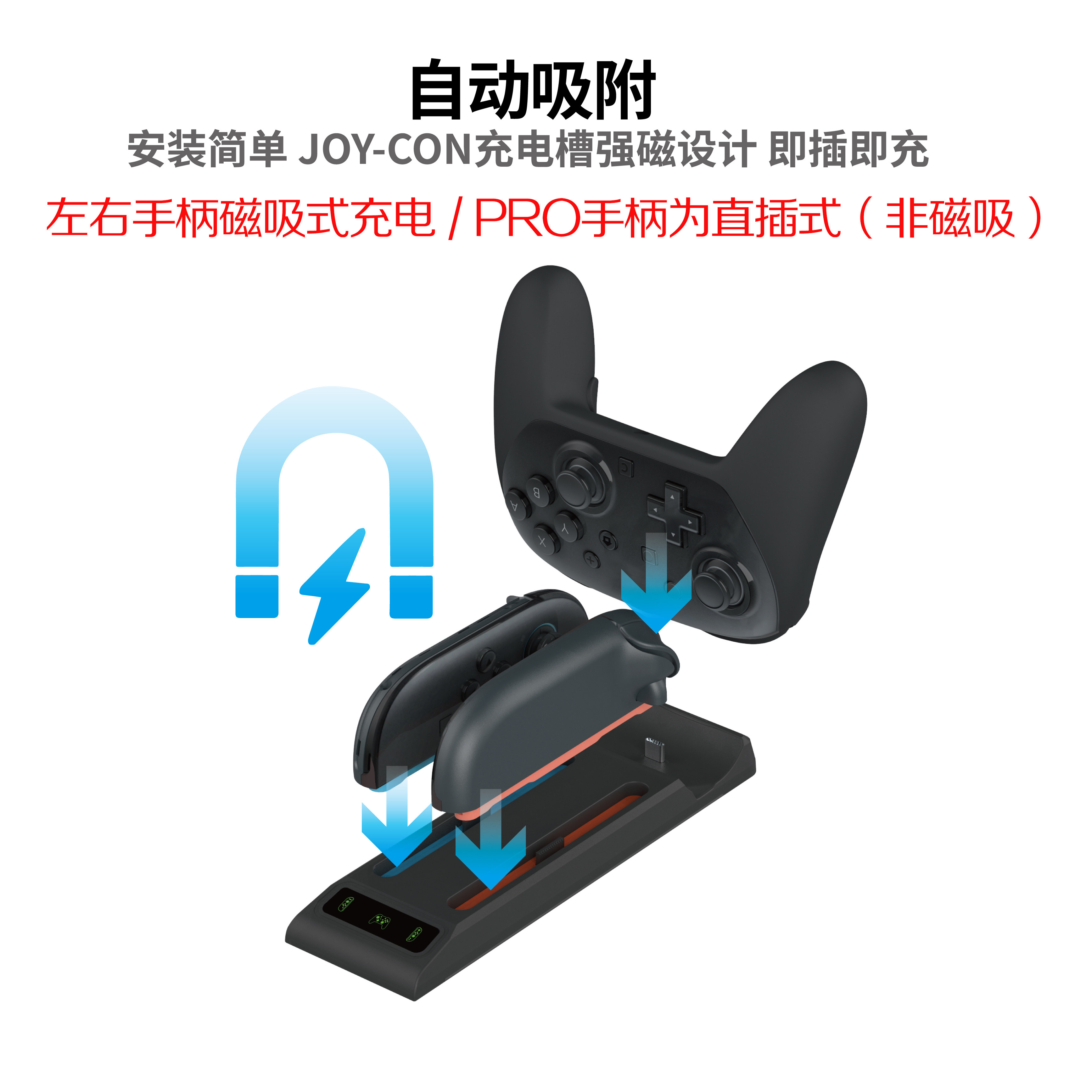📚 PGTECH正品 switch2手柄充电座充NS2PRO手柄座充左右手柄磁吸充电