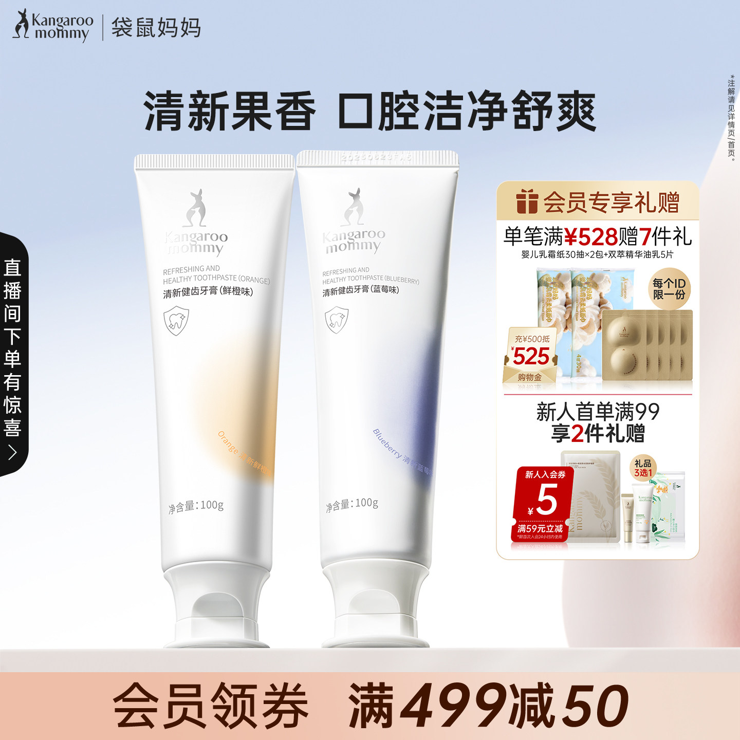 📚 袋鼠妈妈牙膏清新口气专用家庭无氟口腔护理套装果香味官方旗舰店