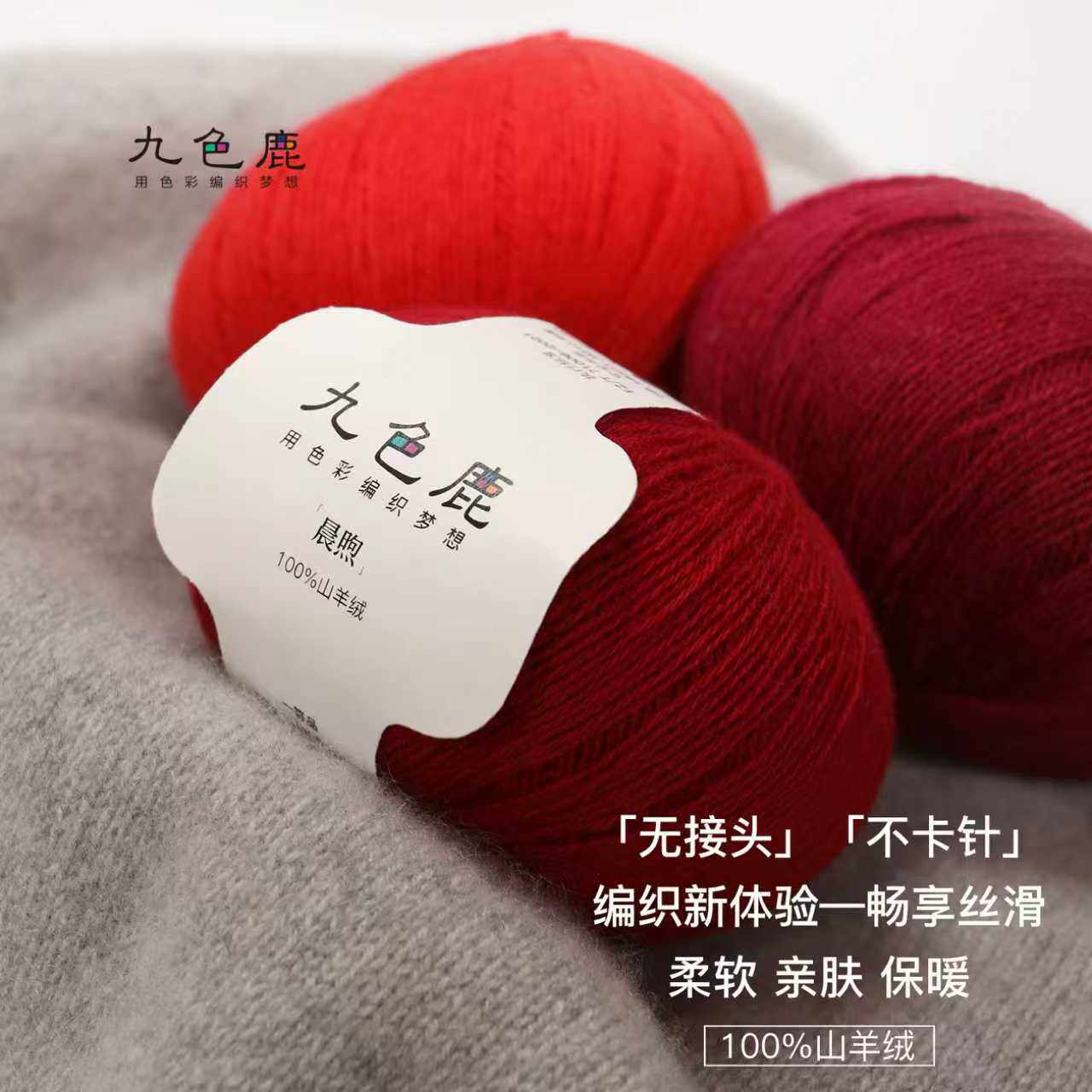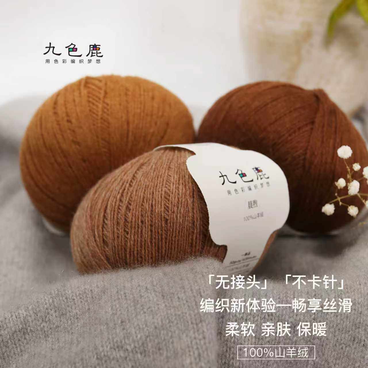 📚 九色鹿晨煦 100%细山羊绒毛线手工编织diy毛衣围巾纯羊绒线团球勾