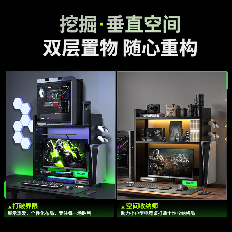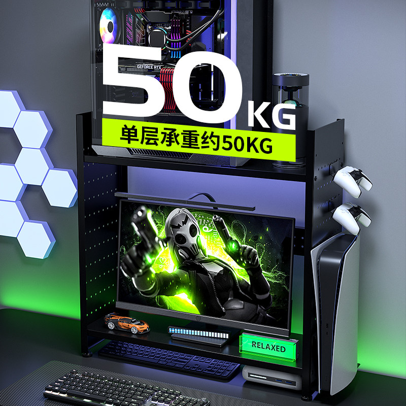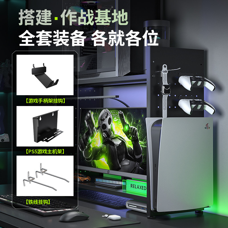 📚 桌上面主机托架两层上墙置物架可放电脑机箱立式洞洞板PS5收纳架