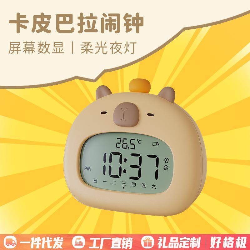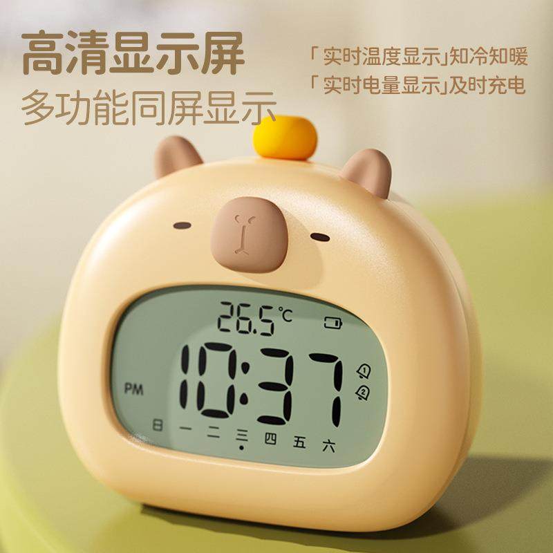 📚 新款卡皮巴拉闹钟 充电款学生专用电子钟多功能创意报时小闹钟