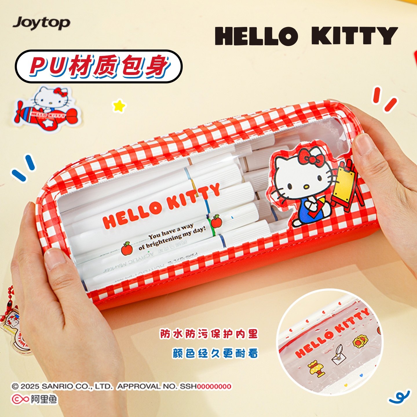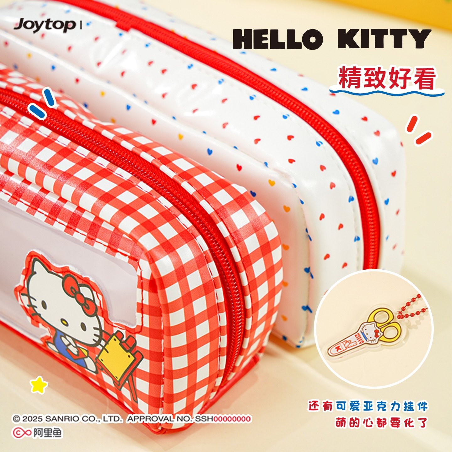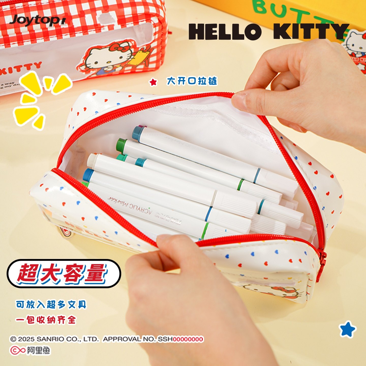 📚 新款正版hellokitty凯蒂猫PU皮质笔袋大容量开窗透明笔袋KT猫文具盒铅笔盒学生高颜值可爱三丽鸥文具袋收纳袋