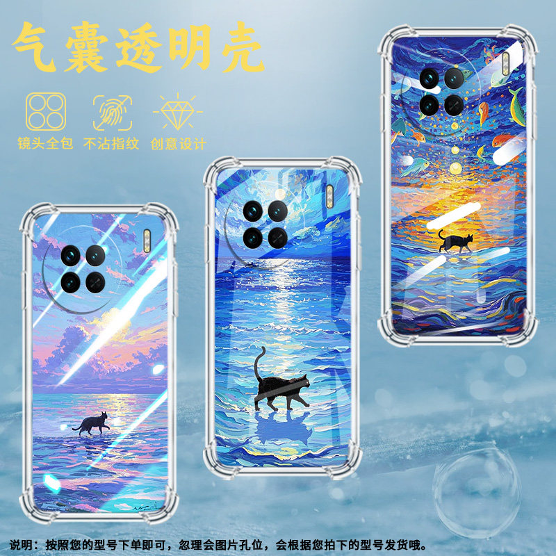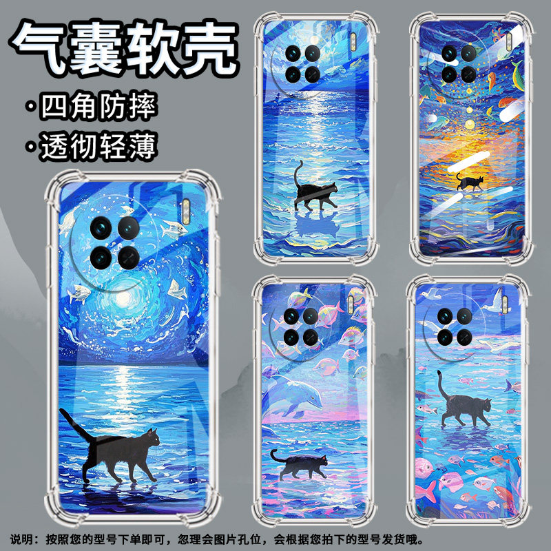 📚 适用vivoX60tPro+手机壳vivoX90Pro+时尚油画海面气囊壳vivoX60曲屏版硅胶vivoX90S高级vivoX50Pro保护套