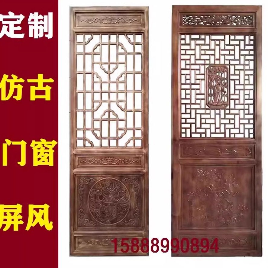 📚 东阳木雕仿古门窗实木窗户花格电视背景墙中式隔断屏风