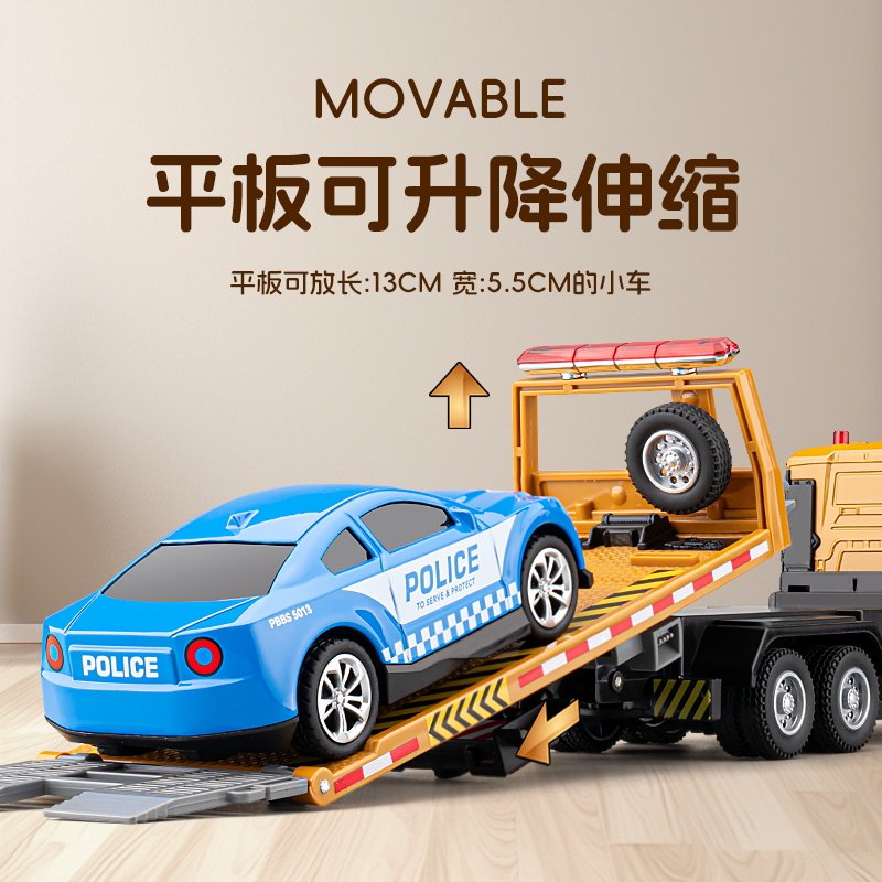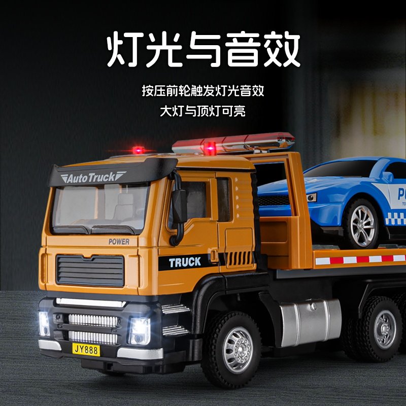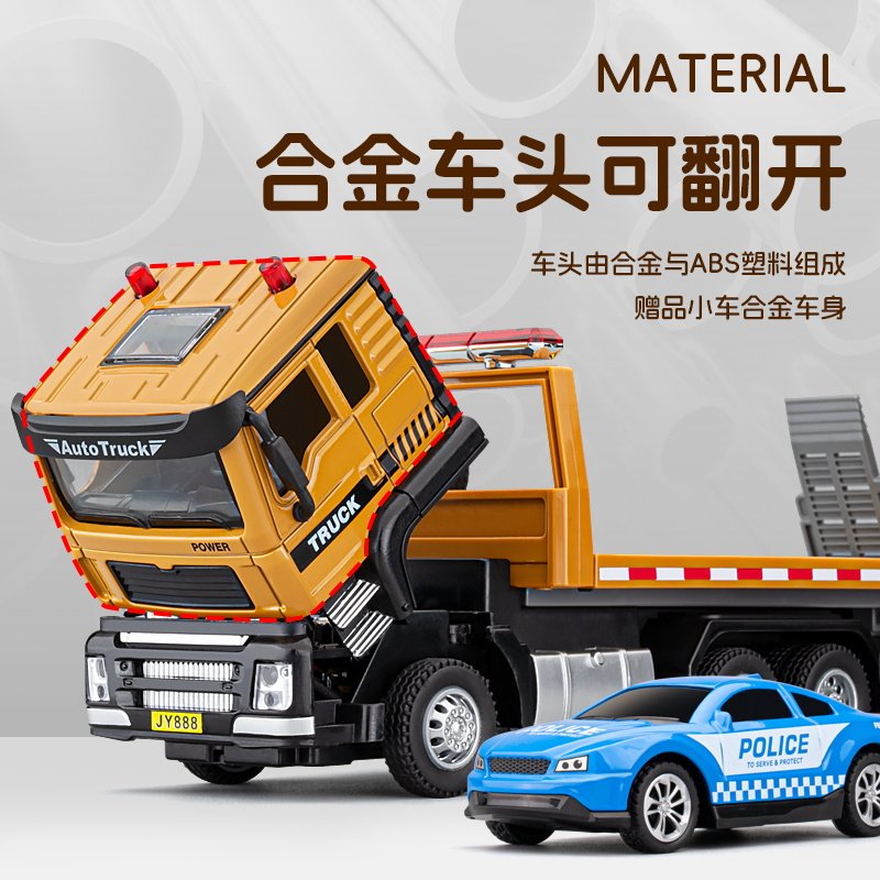 📚 嘉业合金道路救援拖车运输车玩具男孩清障平板升降工程小汽车玩具