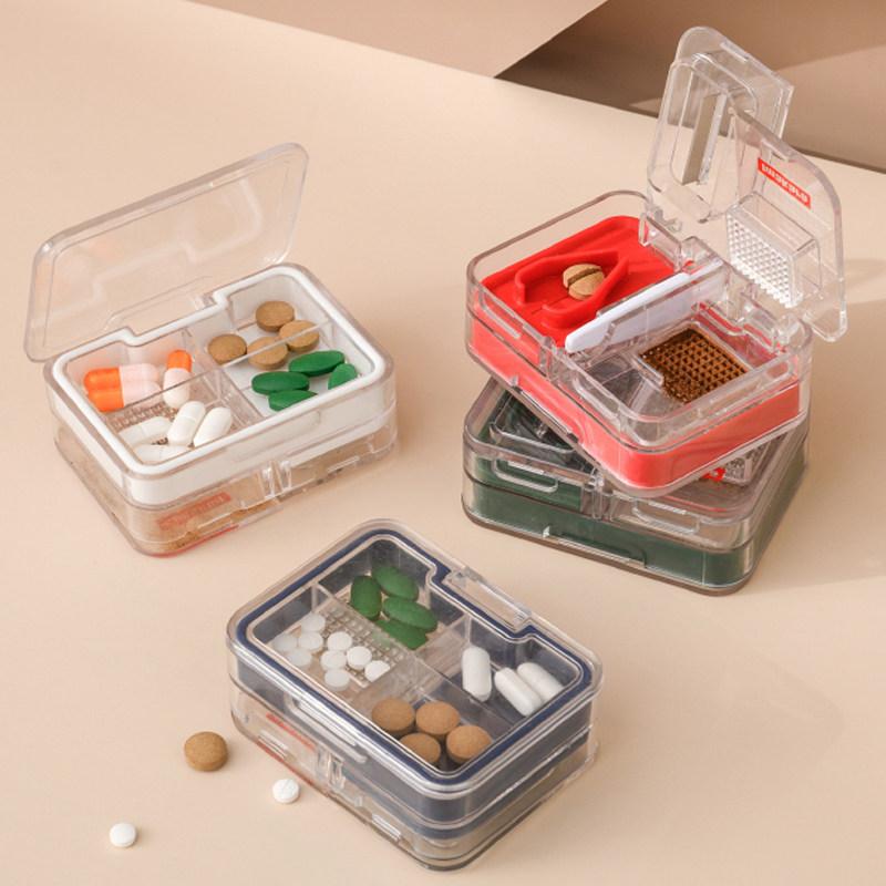 📚 日本切药器一分二切药片神器便携双层多功能药盒研磨药粉分装收纳