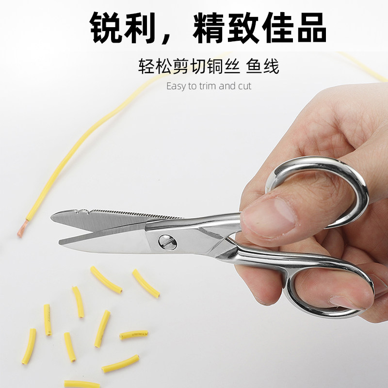 📚 电工剪刀钓鱼不锈钢剪刀专用大力马PE线鱼线剪剥线剪线槽铅铁皮剪