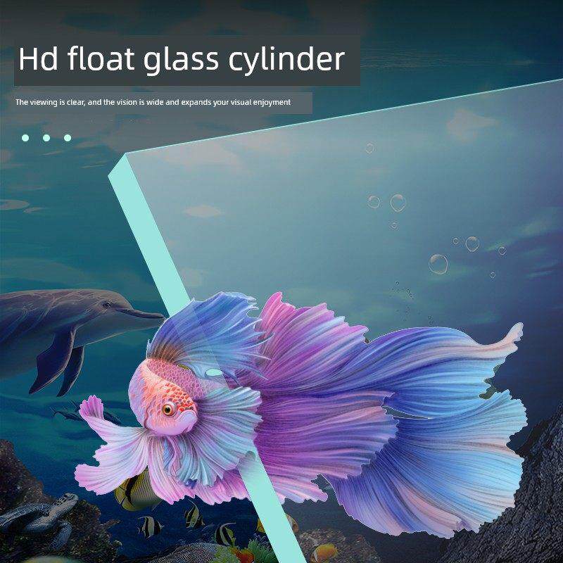 📚 鱼缸热弯玻璃客厅小水族馆桌面无水金鱼斗鱼生态迷你鱼缸裸缸