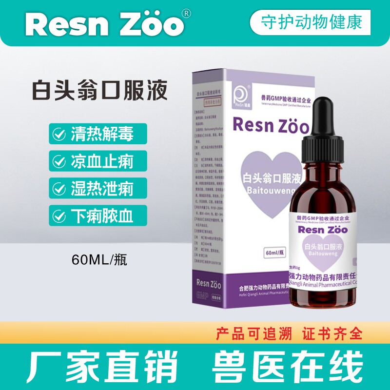 📚 宠物药中药白头翁口服液肠炎拉稀腹泻黄白痢脓血止痢软便孕猫狗兔