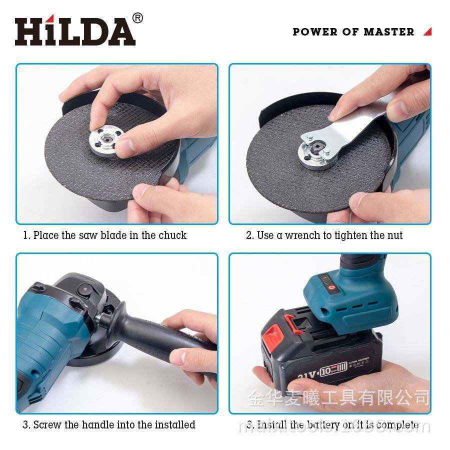 📚 HILDA希尔达角磨机打磨机家用角磨机锂电切割机21v无刷大角磨机