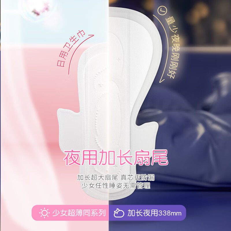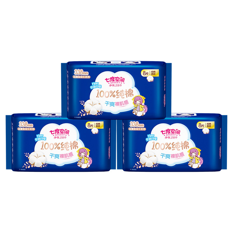 📚 七度空间少女系列卫生巾纯棉超薄超长338m夜用姨妈巾学生批实惠装