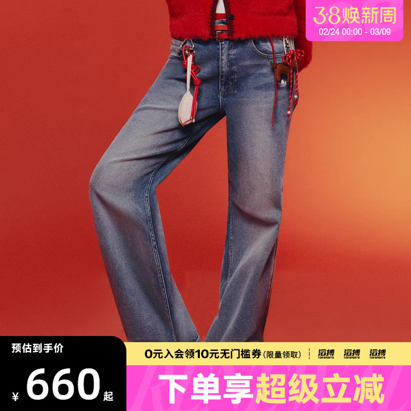 📚 adidas阿迪达斯三叶草新年款女子运动休闲牛仔长裤KT3173