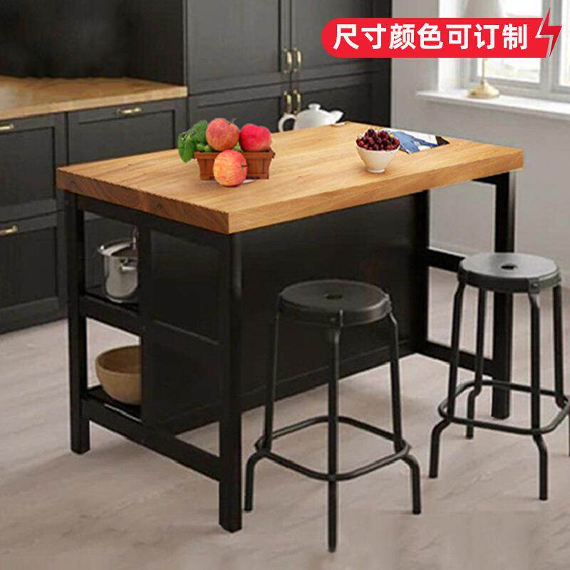📚 开放式厨房中岛台单独可移动料理台吧桌一体家用实木餐边桌