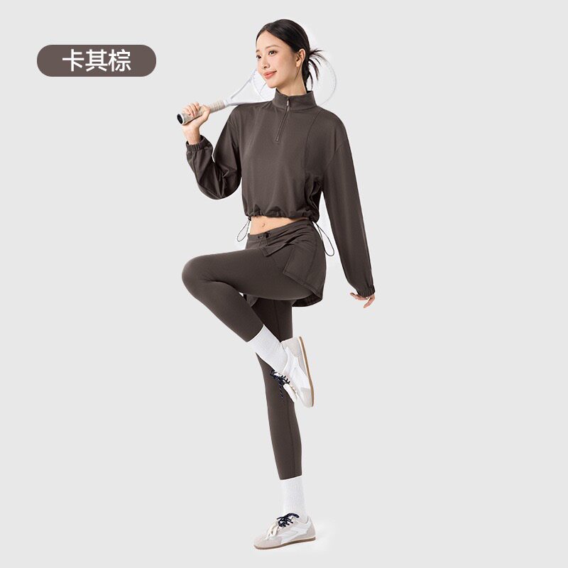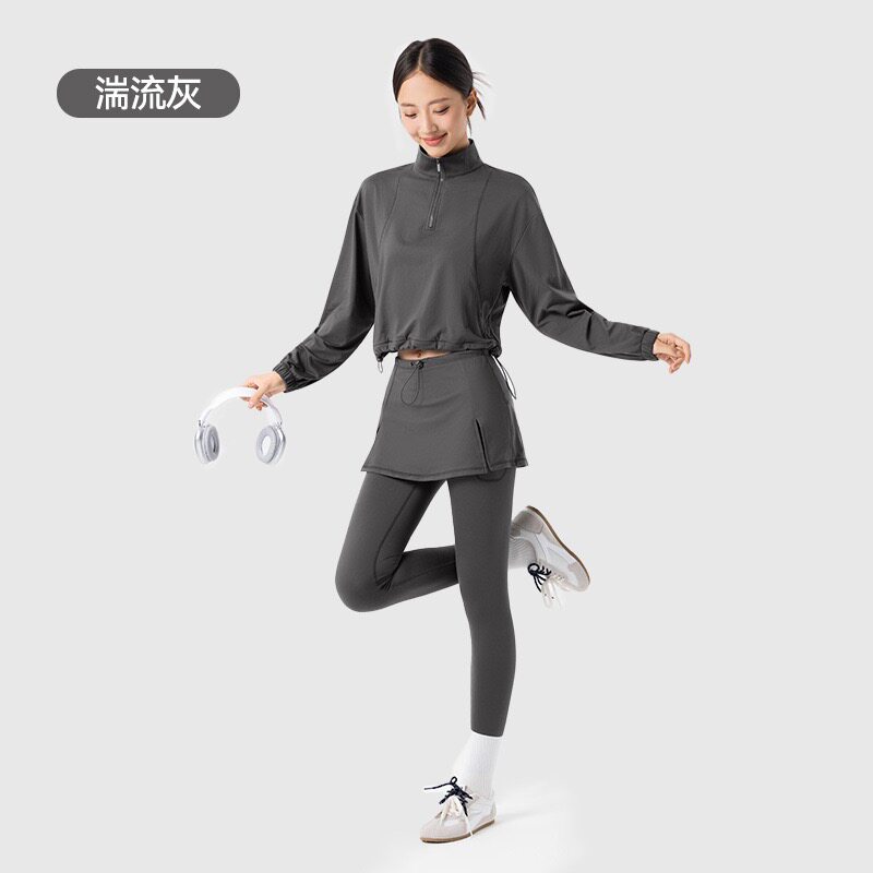 📚 ALOACTIVE瑜伽套装女简约运动风长袖修身显瘦运动骑行跑步两件套