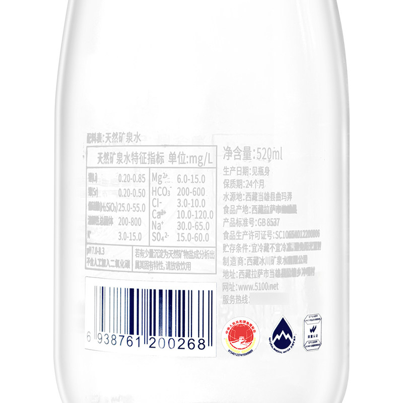 📚 5100西藏冰川矿泉水饮用天然矿泉水520ml玻璃瓶饮用水高端水