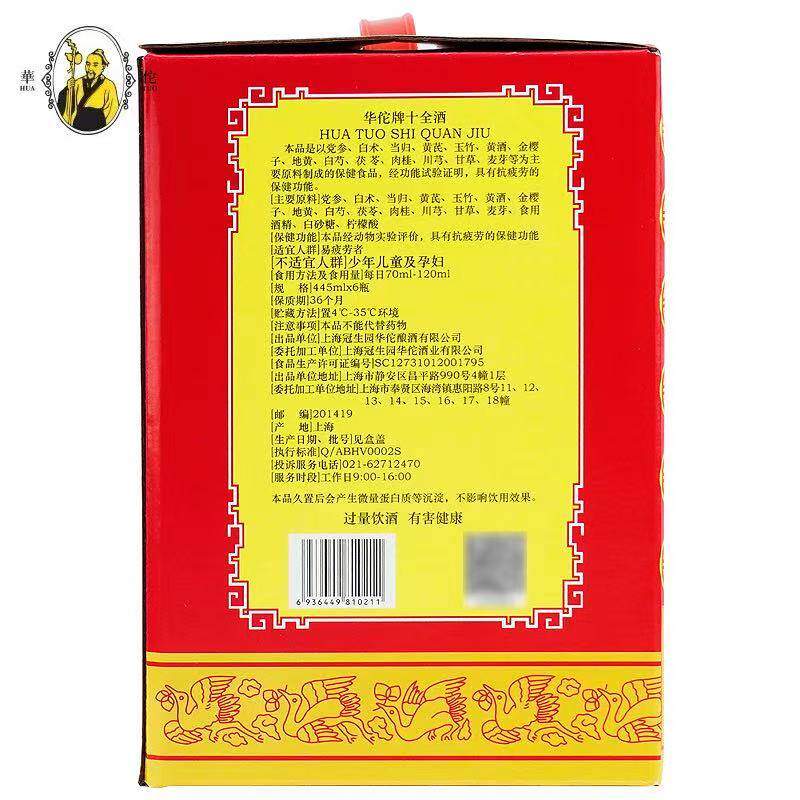📚 上海冠生园华佗十全大补酒445ml正宗老牌保健药酒礼盒佳品24.5度