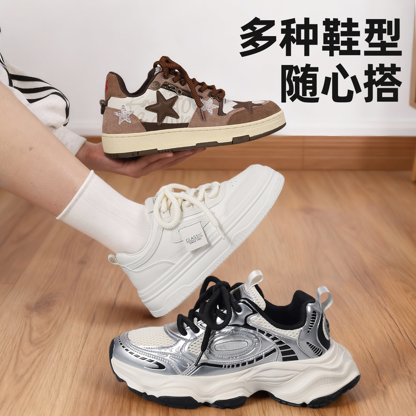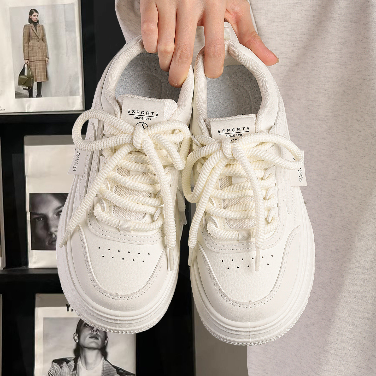 📚 粗鞋带圆绳男女士开口笑帆布板鞋白米黑色加粗款面包鞋老爹鞋麻绳