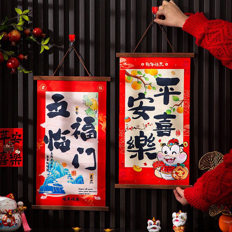 📚 2025蛇年新年国潮绸缎对联挂件新款春联客厅入户门挂饰氛围装饰