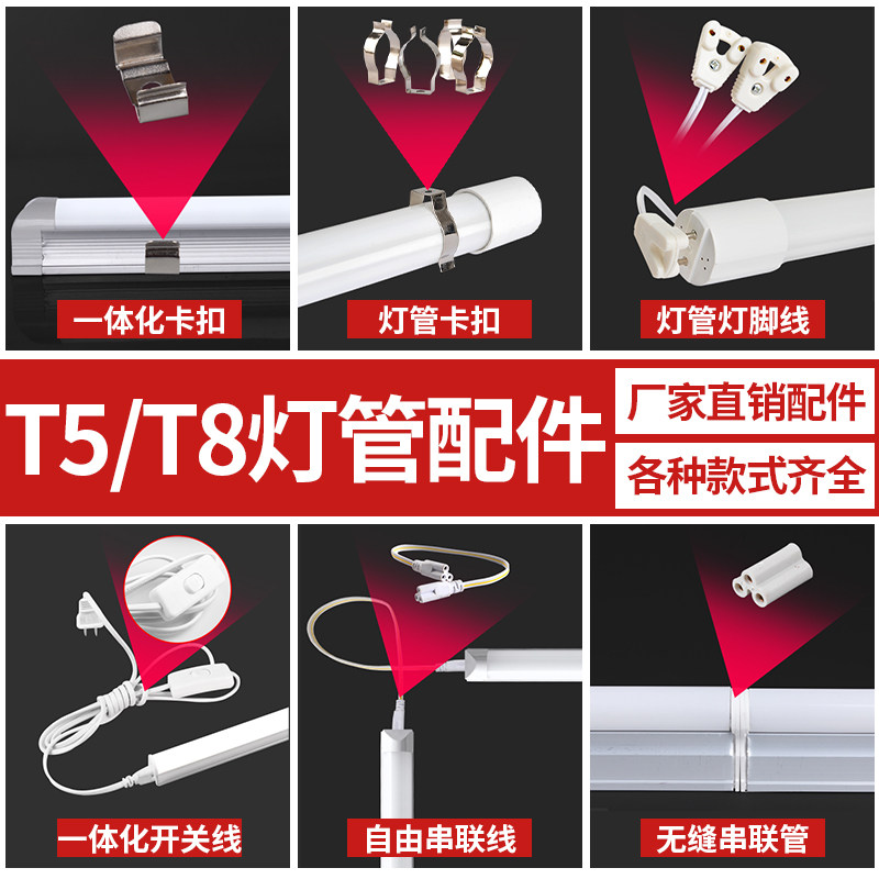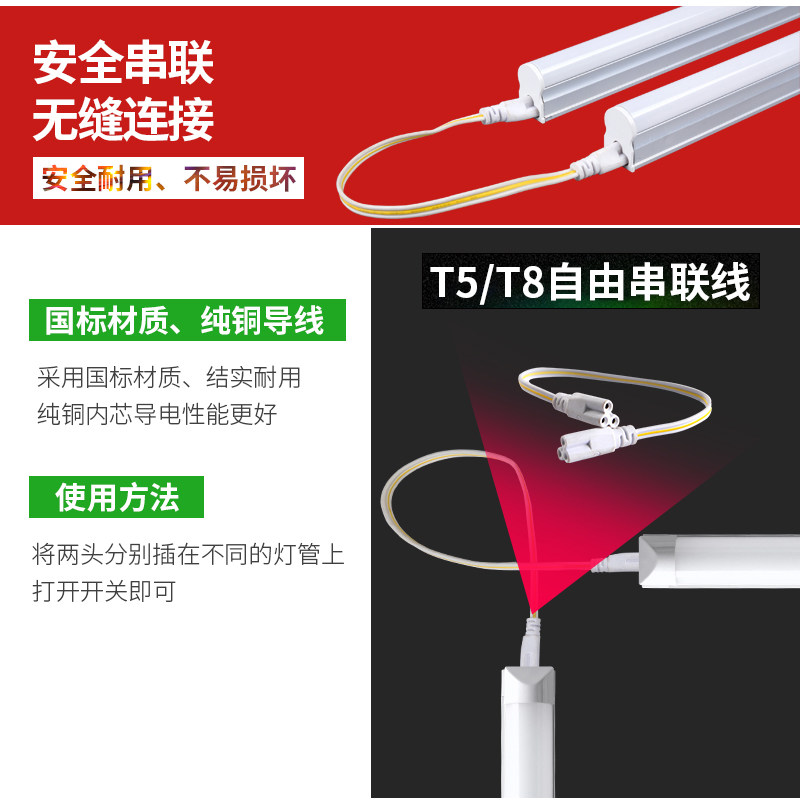 📚 led灯管T5/T8一体化配件插头电源线转接线延长线T8灯管灯箱灯脚线
