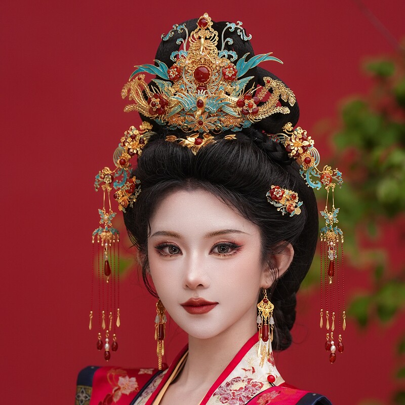📚 清月鹿鸣原创【凤羽落金】古风婚嫁凤冠明制发冠中式婚礼新娘头饰