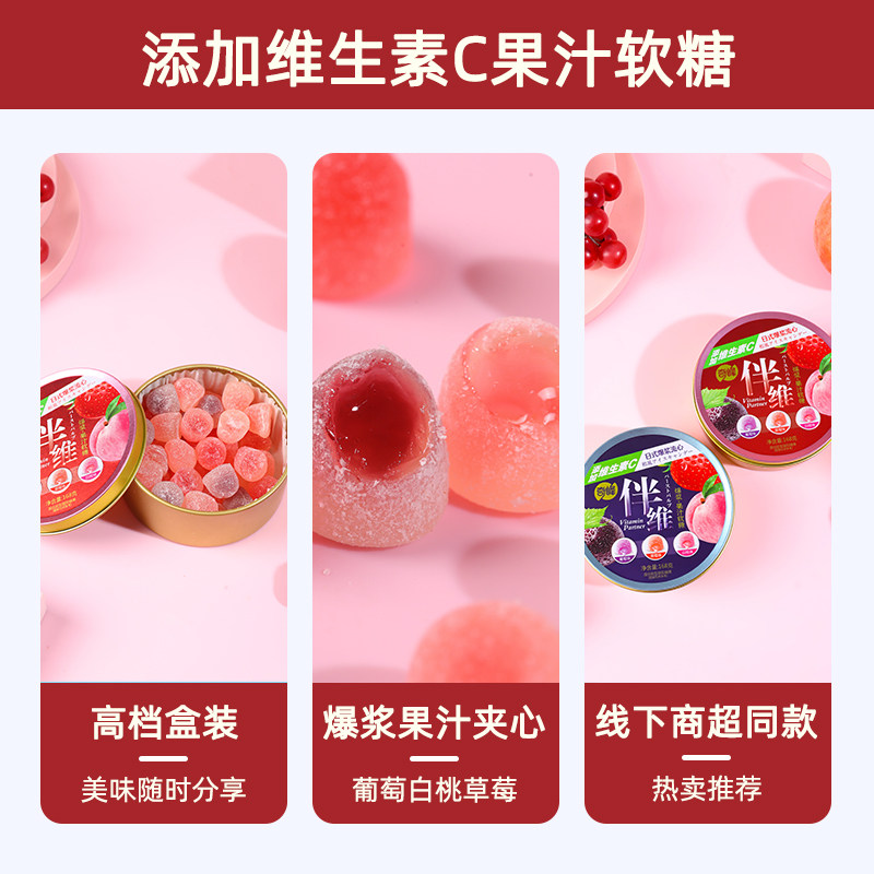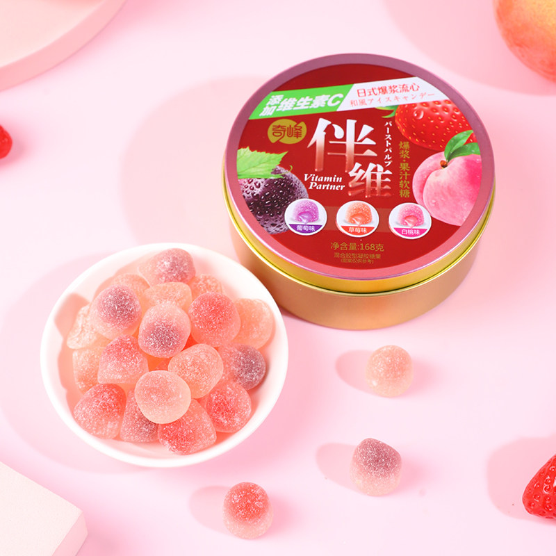 💃小伙伴们,你们还在等什么呢?快来尝一尝这款奇峰维生素C爆浆果汁夹心软糖吧!让你的味蕾和心情都充满甜蜜和活力!
