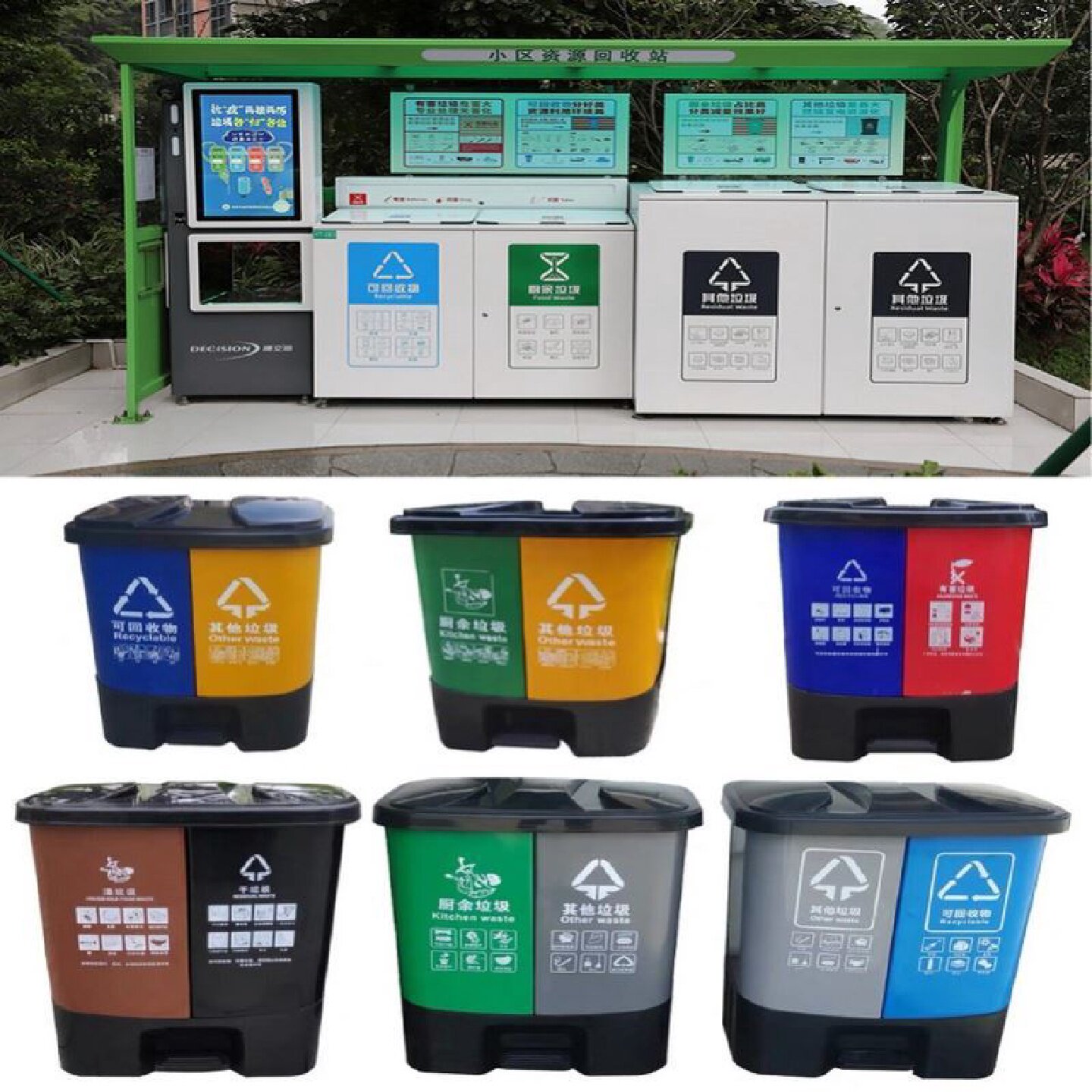 📚 户外垃圾箱四分类大容量四色垃圾回收箱垃圾站智能垃圾箱镀锌定制