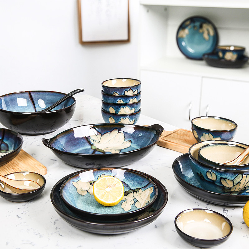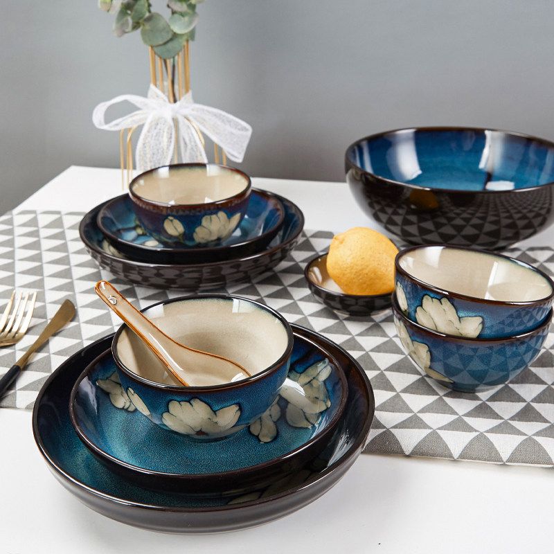 📚 玉泉餐具套装碗盘家用陶瓷新中式轻奢碗碟碗筷日式防烫高级感盘子