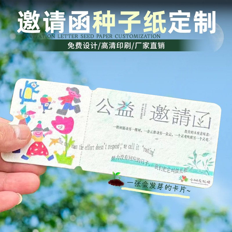 📚 邀请函定制环保种子纸张公益活动入场券门票根婚礼请帖节目单可种植发芽明信片高级感贺卡感谢卡创意设计印刷