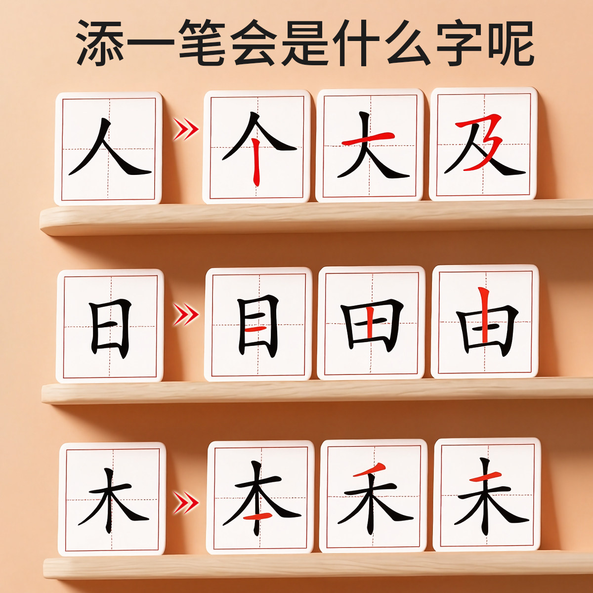 📚 加一笔变新字卡片儿童益智玩具亲子互动一年级幼儿早教趣味识字卡