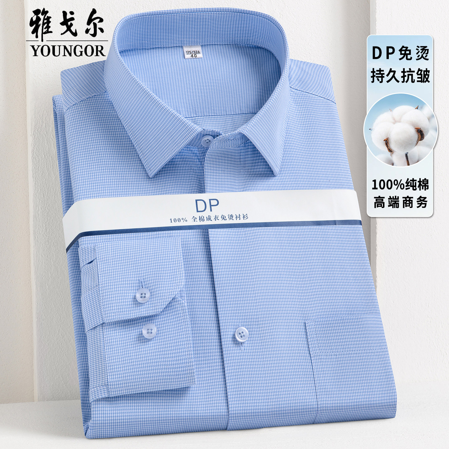 📚 雅戈尔衬衫男白色新款长袖纯棉免烫商务正装中年职业男士条纹衬衣