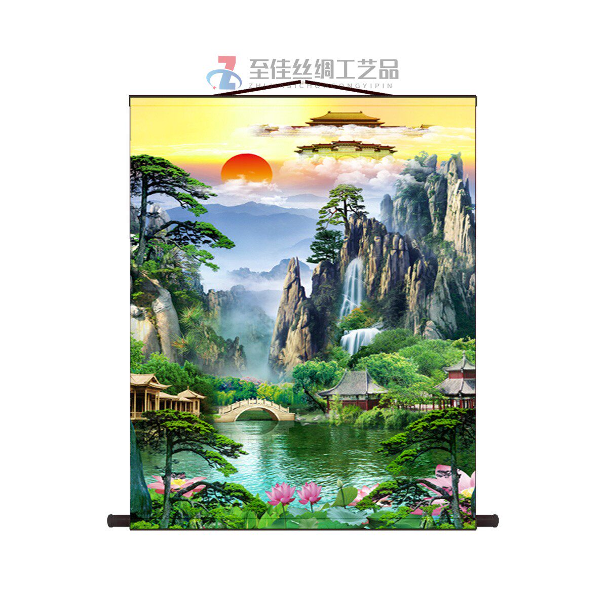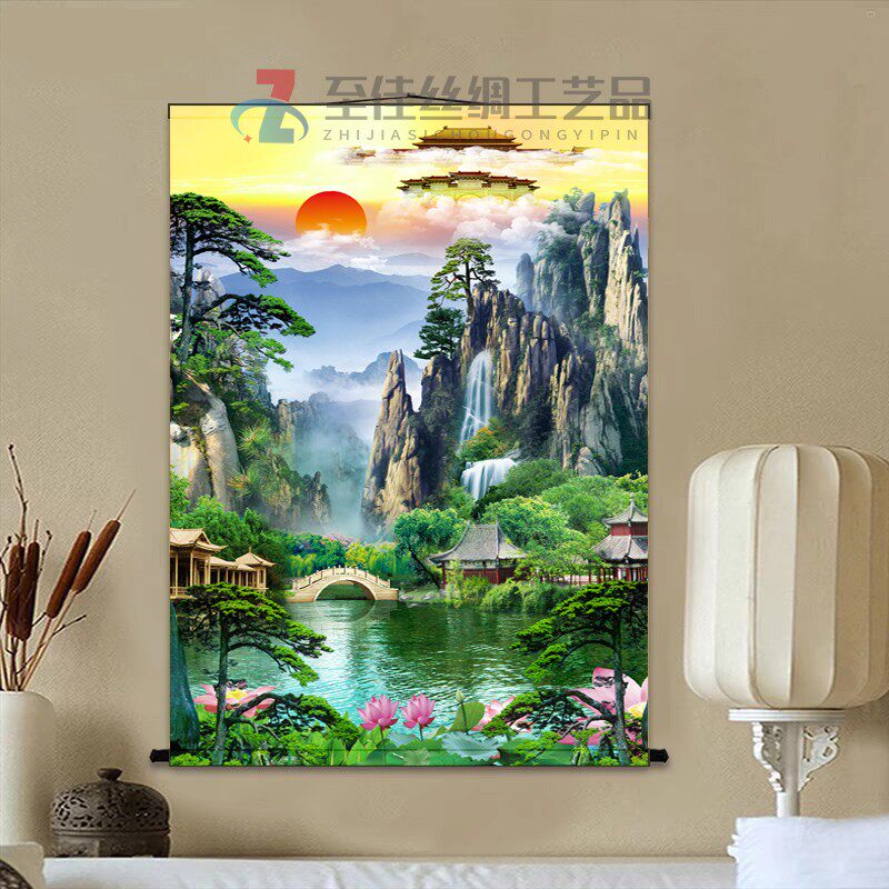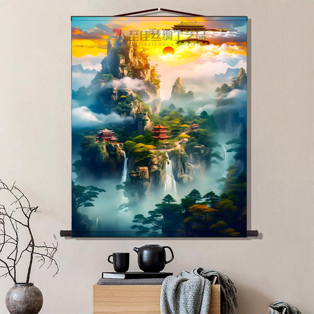 📚 暗堂口仙家山水挂画丝绸卷轴画风水玄关画无活物天宫仙境三尺三竖