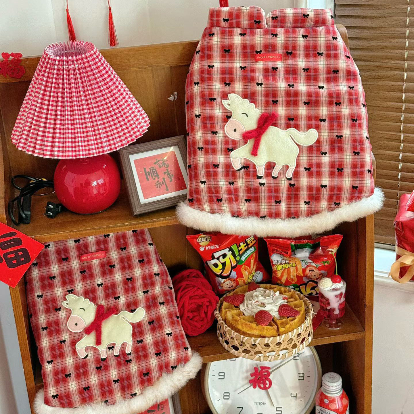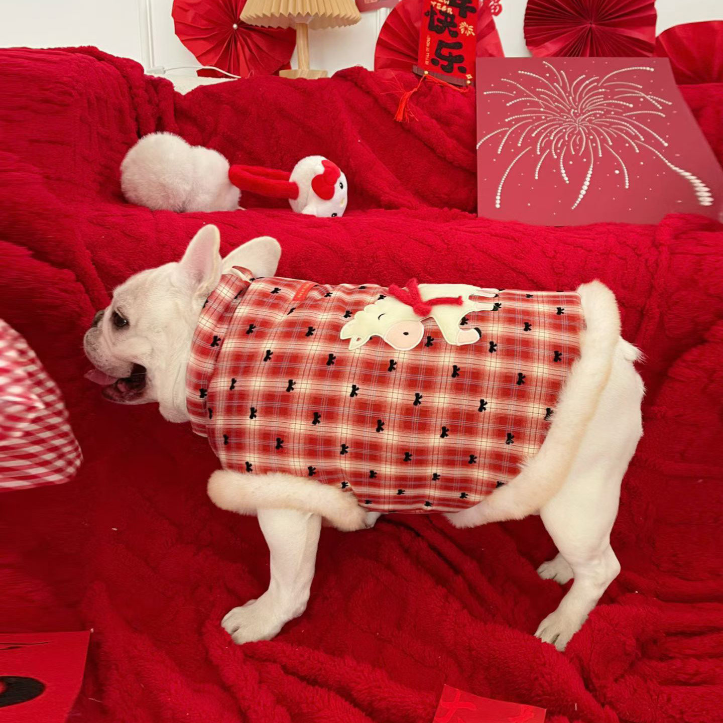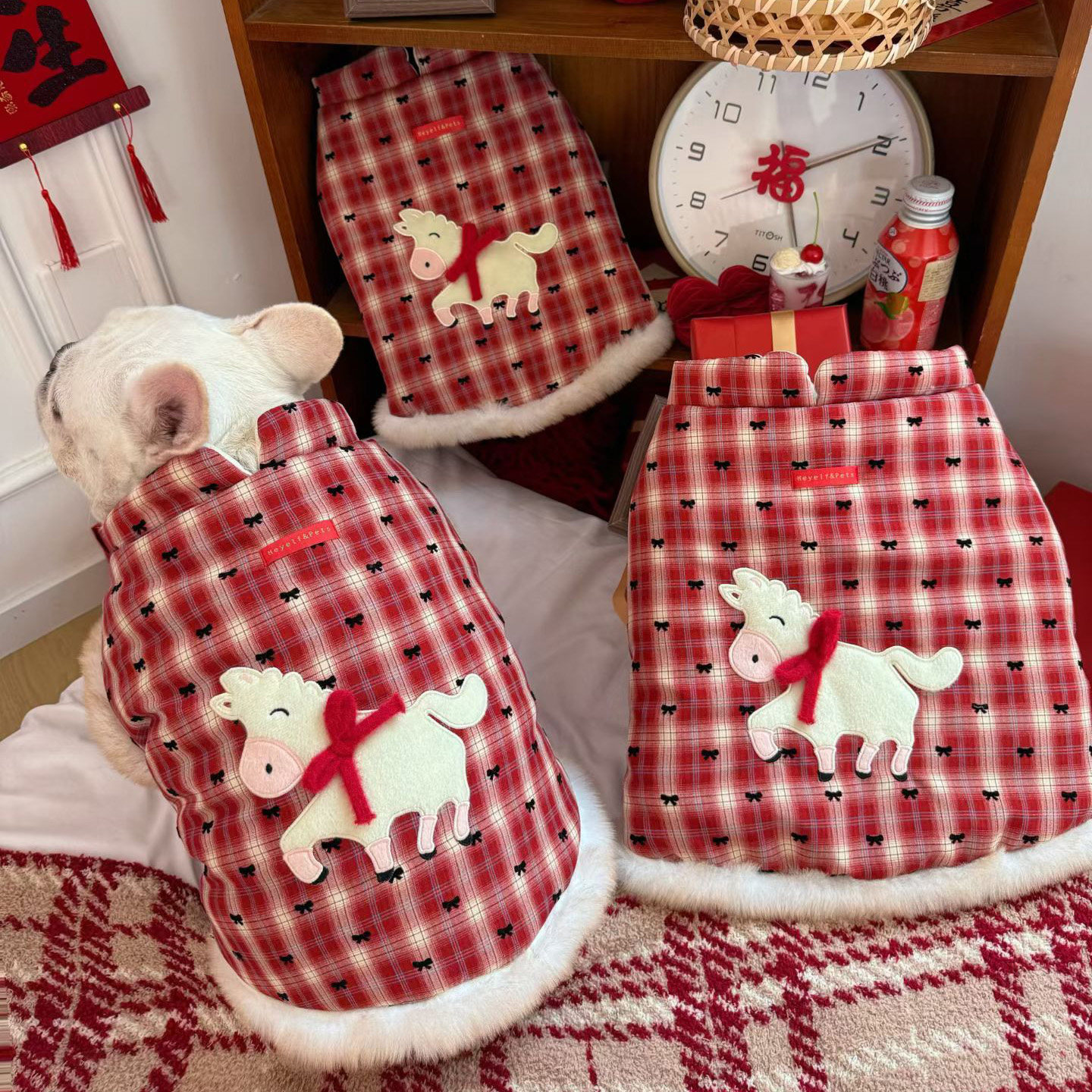 📚 巴哥法斗加绒衣服宠物过年喜庆新年衣服保暖斗牛衣服柴犬狗狗卫衣