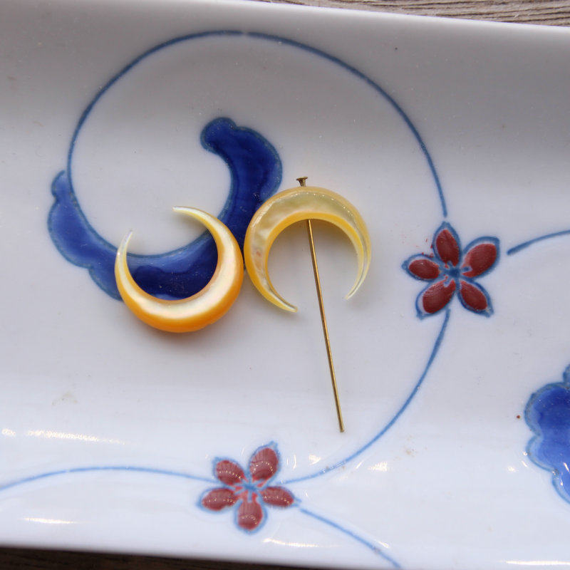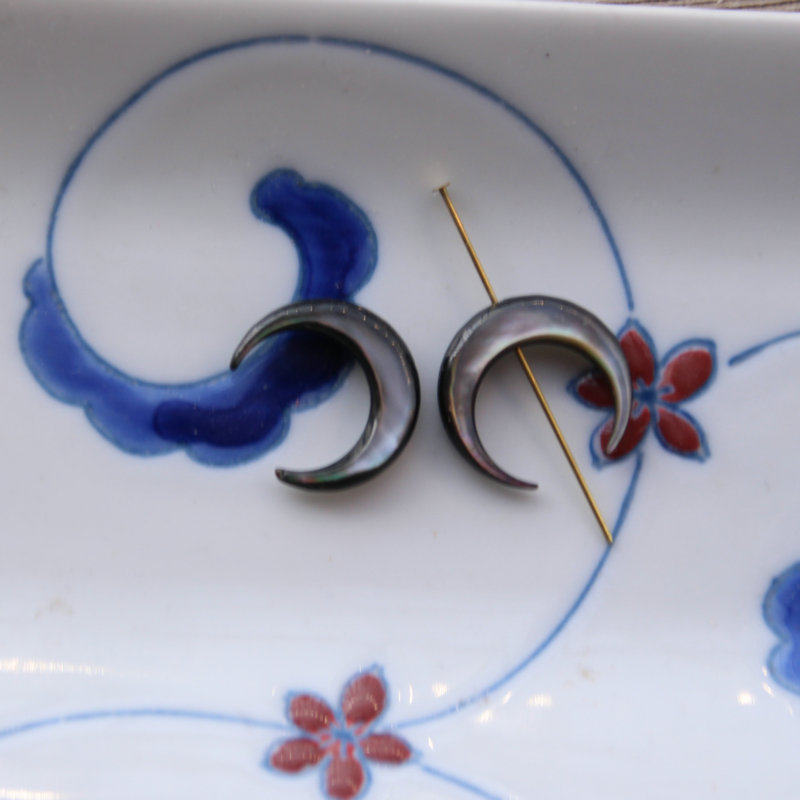 📚 天然黄贝黑贝弯月通孔坠子20mm海水贝大月亮项链发簪手工饰品配件