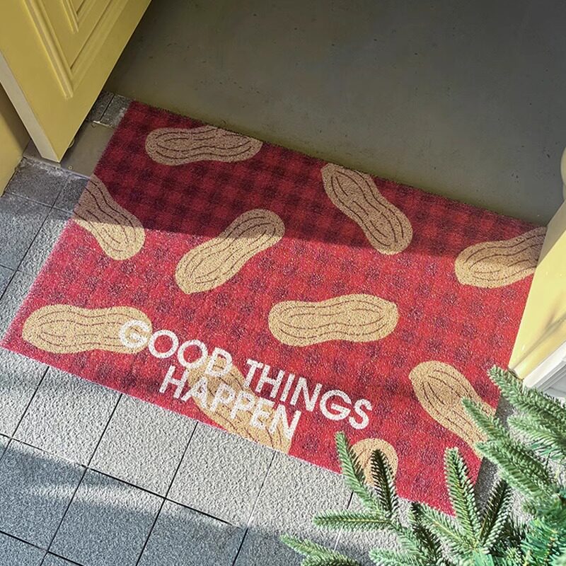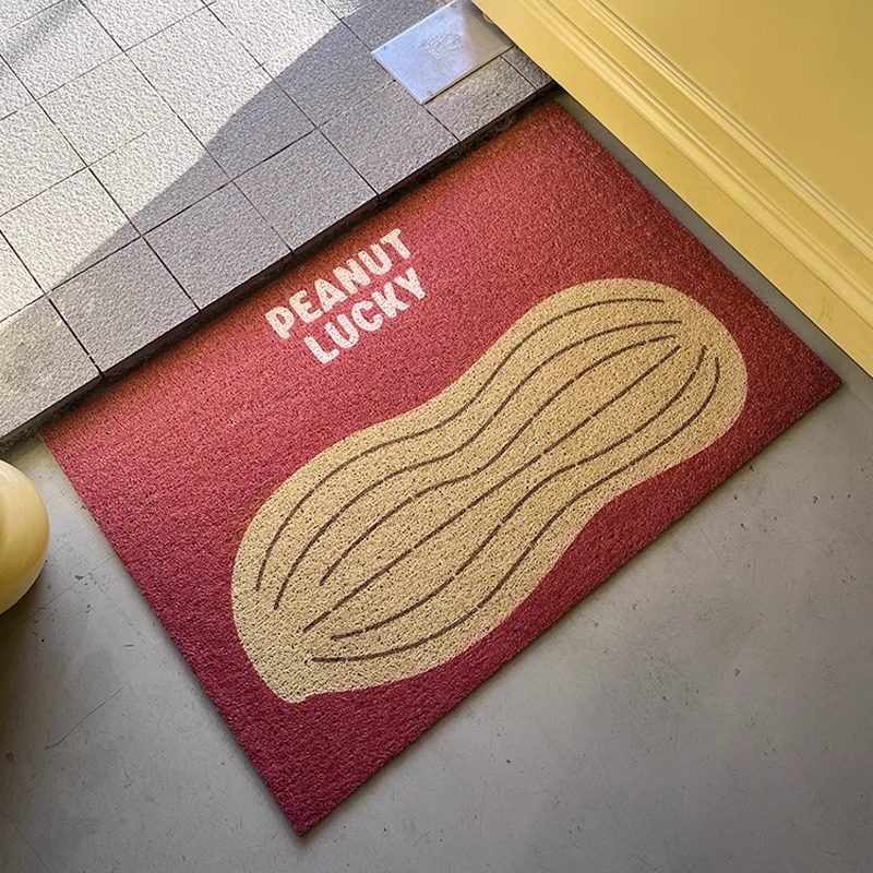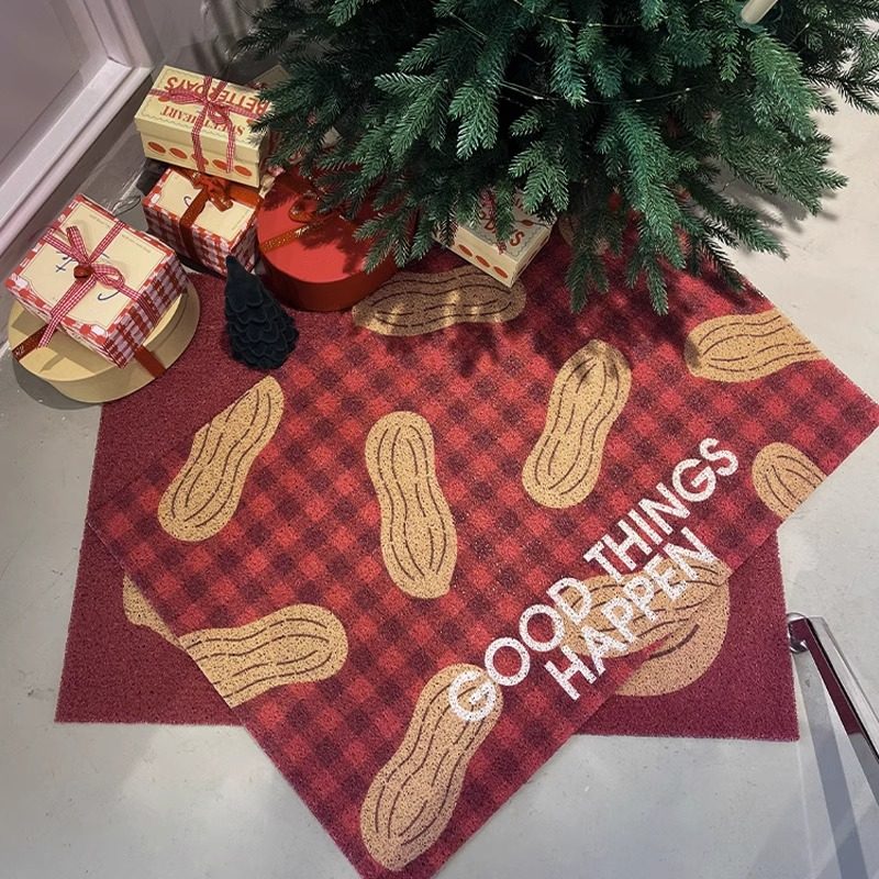 📚 小岛宅猫喜事花生家用入户地垫可爱进门耐脏地垫丝圈裁剪新年圣诞