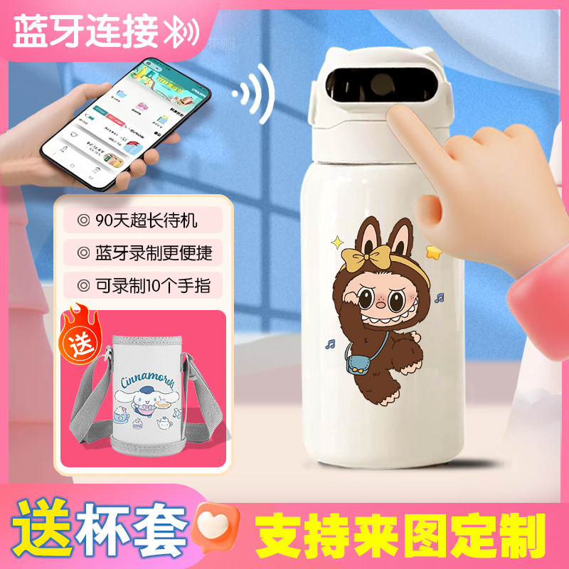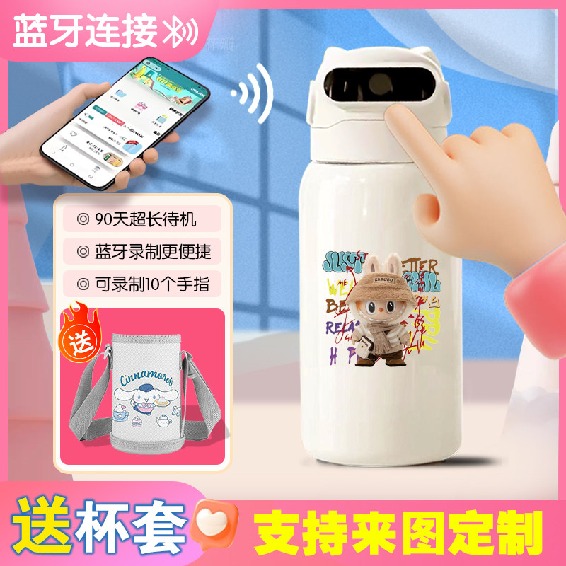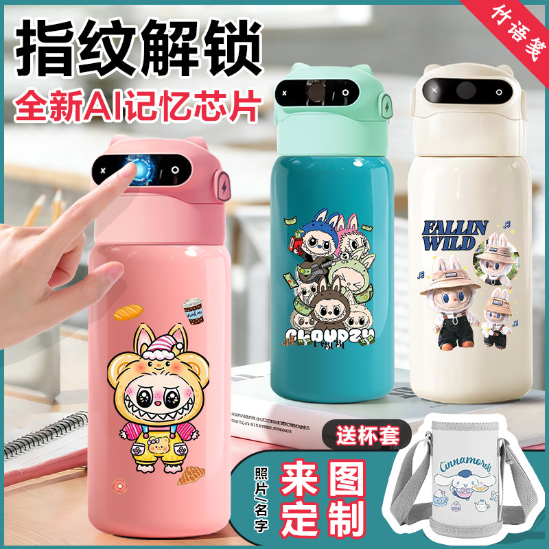 📚 拉布布labubu人脸识别指纹解锁保温杯儿童智能水杯男女学生水壶