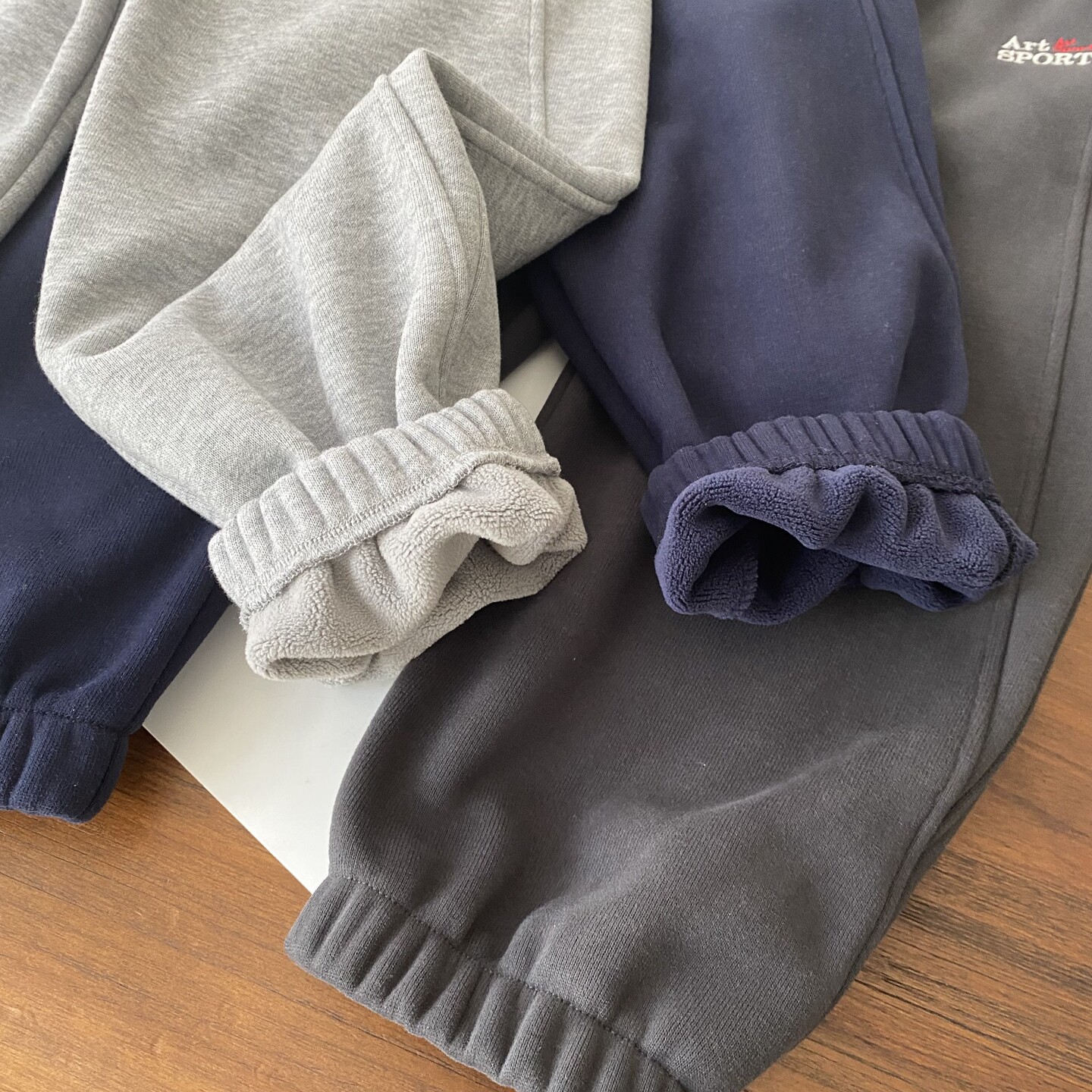 📚 保暖不臃肿/侧拼小弯刀加绒裤 儿童男针织厚运动裤 收口防风