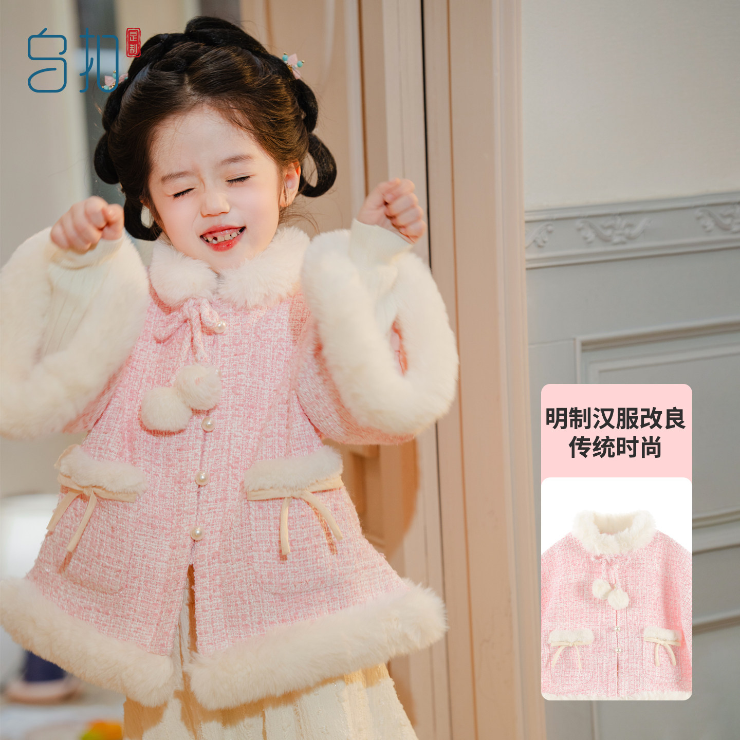 #乌扣玉团暖裘女童汉服明制套装 #中国风日常穿搭 #冬日温暖单品 #优惠价398元